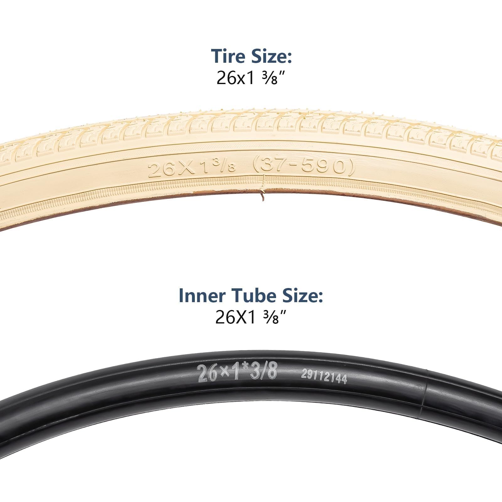 YunSCM 2本セット,26 1 3/8 タイヤ,26x1 3/8 37-590 自転車タイヤ + 26x1 3/8 チューブ 肉厚 米式バルブ32mm +リムテープ + タイヤレバ,適用 26インチ 1 3/8 ロードバイク、電動アシスト自転車,Y-1127(ベージュ)