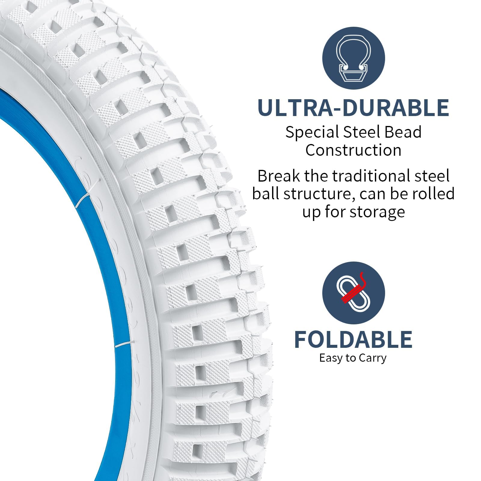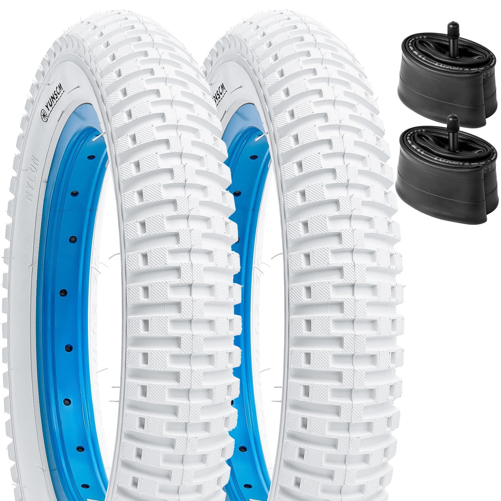 YunSCM 2本セット,14 1.95 タイヤ ホワイト,14x1.95 53-254 自転車タイヤ カラー+ 14x1.75/2.25 チューブ 肉厚 米式バルブ32mm,適用14 インチ 1.95 マウンテンバイク、クロスバイク,Y-262(白)