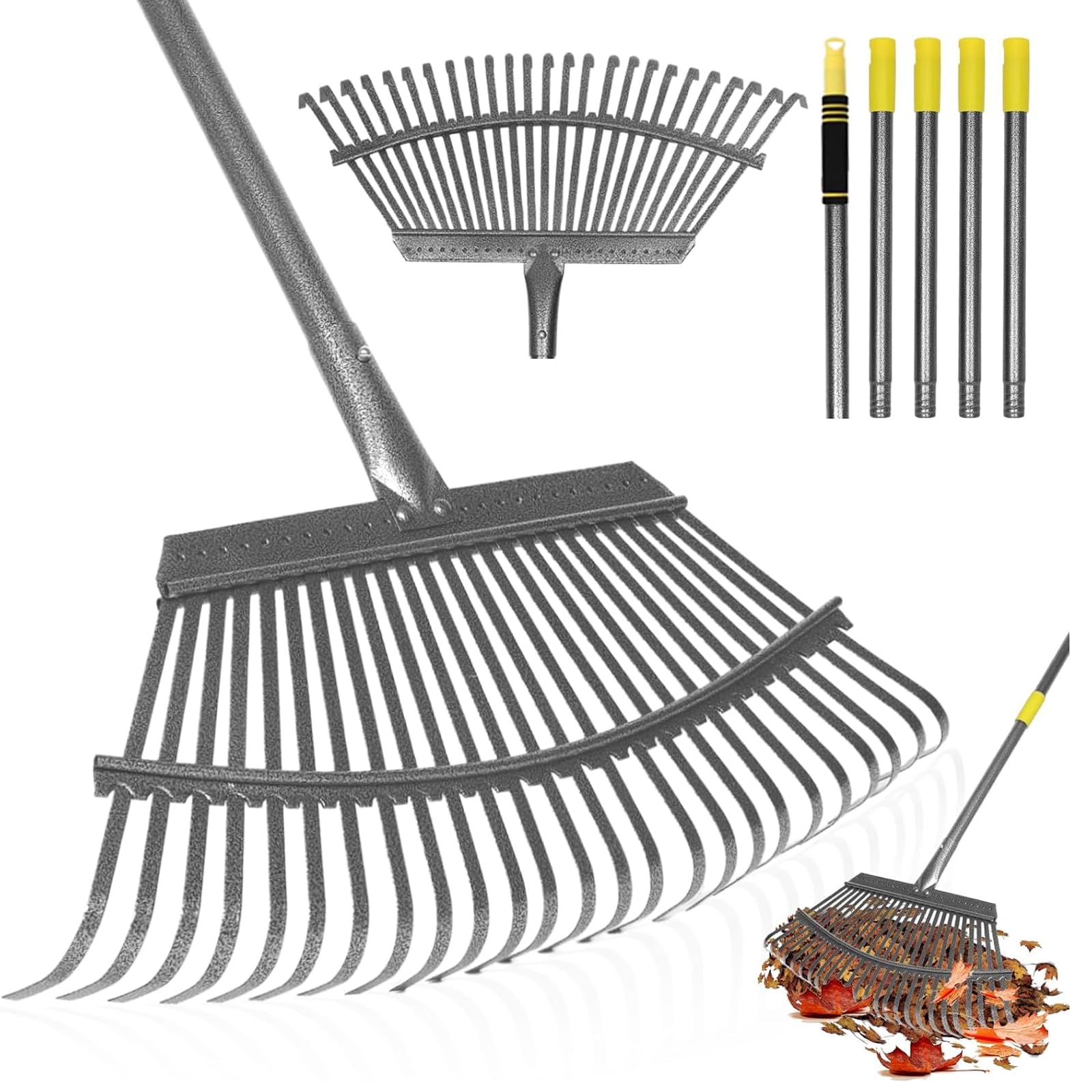 TerraShine 熊手 レーキ 25爪 ガーデンレーキ 落葉掃き 4段階の長さ調節が可能 92cm-184cm 軽量 吊り下げ式 頑丈 落葉掃き園芸 草刈り/芝生/庭/草用具