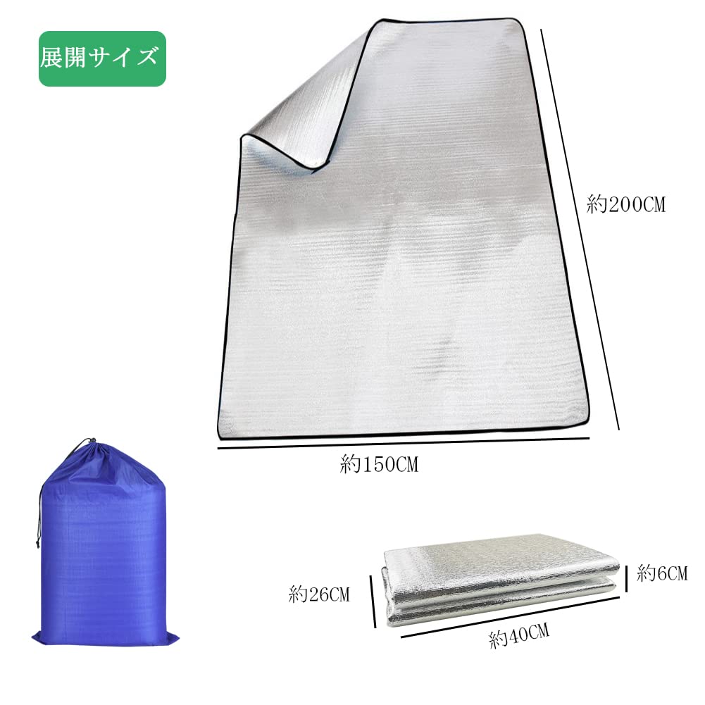 HWSHOW 銀マット アルミシート キャンプ 用 断熱 冬 アルミマット シート (60/100/120/150/180/200/250cmx200cm) レジャーシート ピクニックシート 断熱マット テントマット 防水 防災 車中泊 収納袋付 両面アルミ蒸着