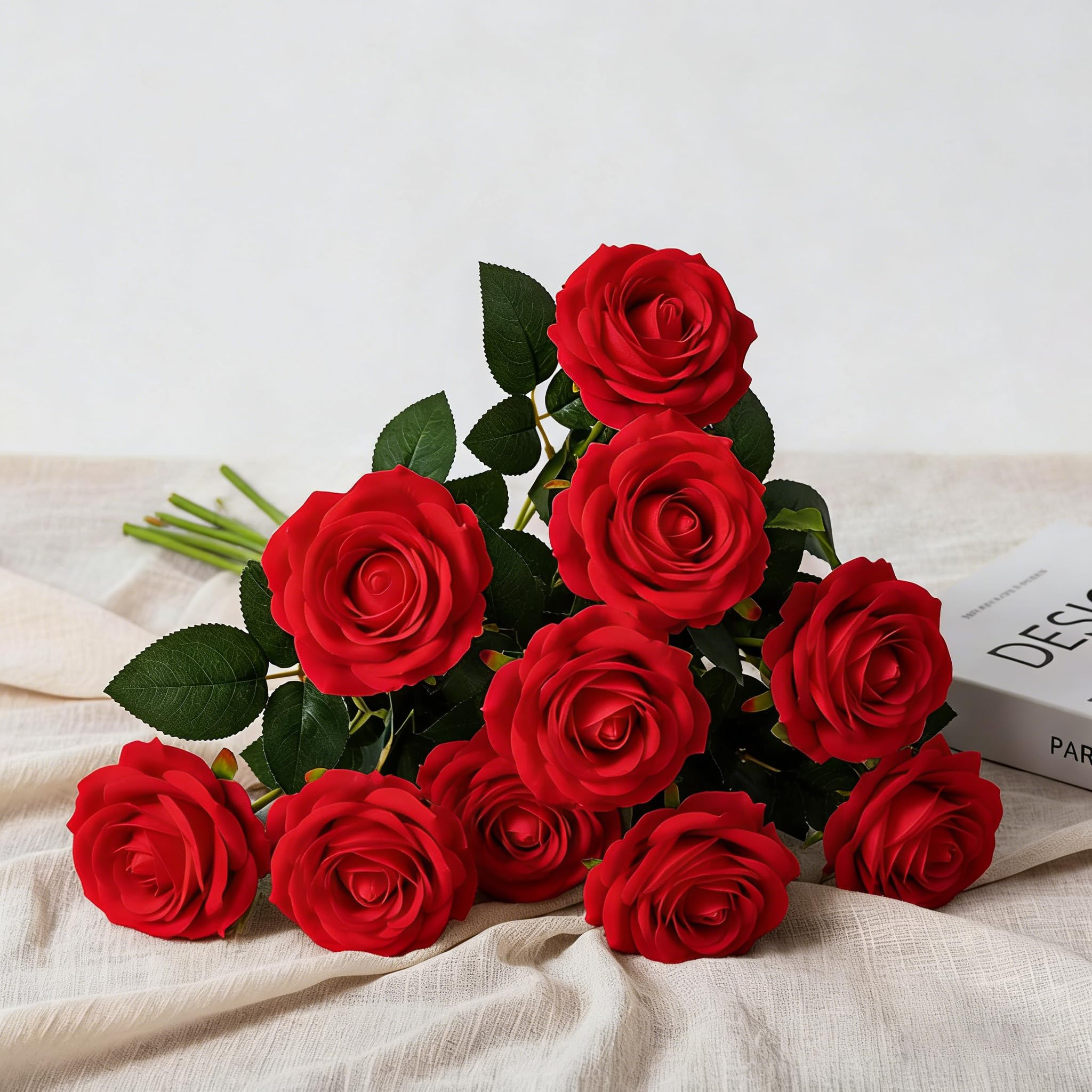 造花 バラ 10本セット シルクフラワー 花束 フェイクフラワー おしゃれ 母の日 結婚式 誕生日 入学式 装飾用 花径7cm*長さ50cm ホワイト (レッド)