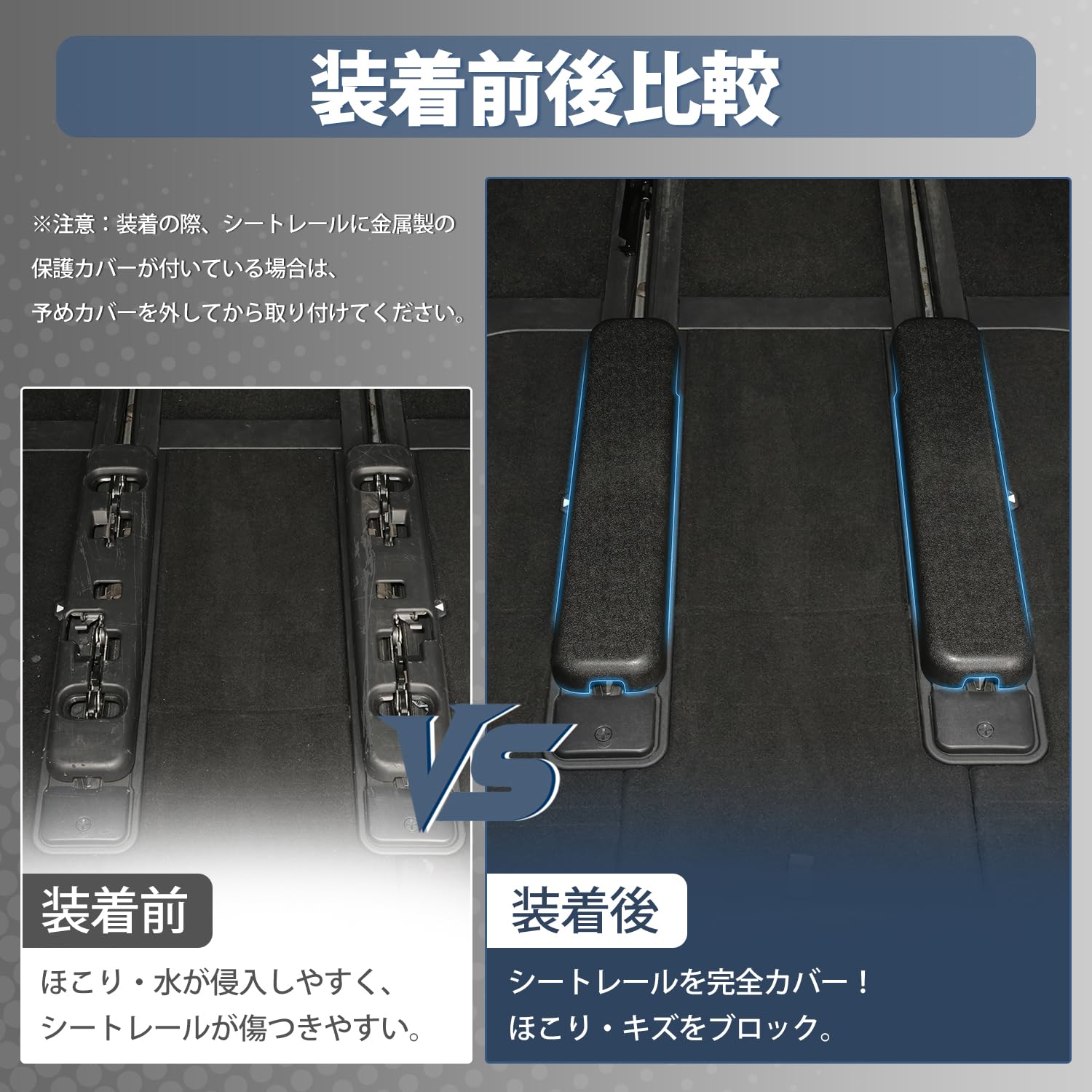 レールカバー 適合 トヨタ アルファード・ヴェルファイア 40系 シートレールカバー, 3列目用, 2023年6月~, 汚れ防止・キズ防止, 2個セット, ブラック