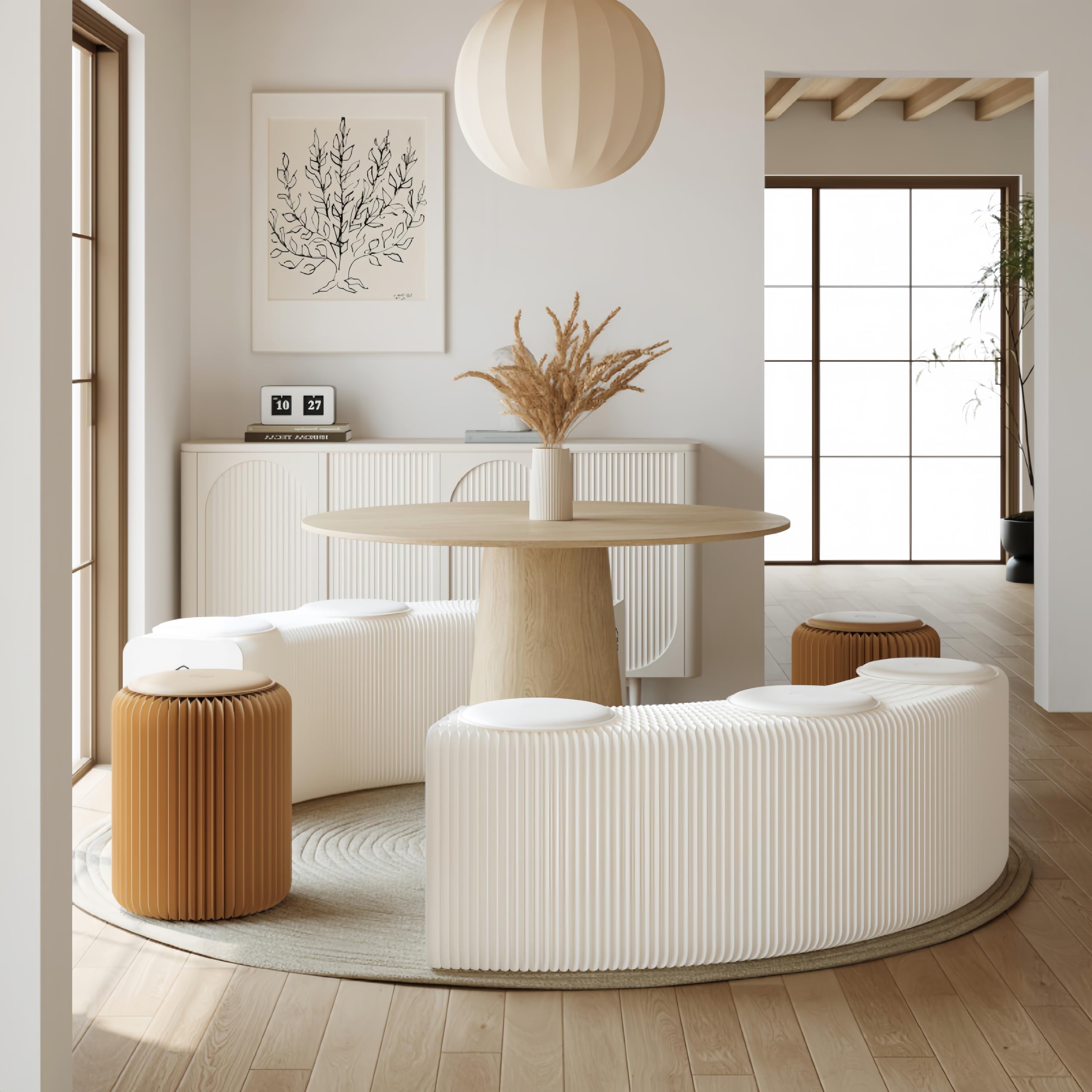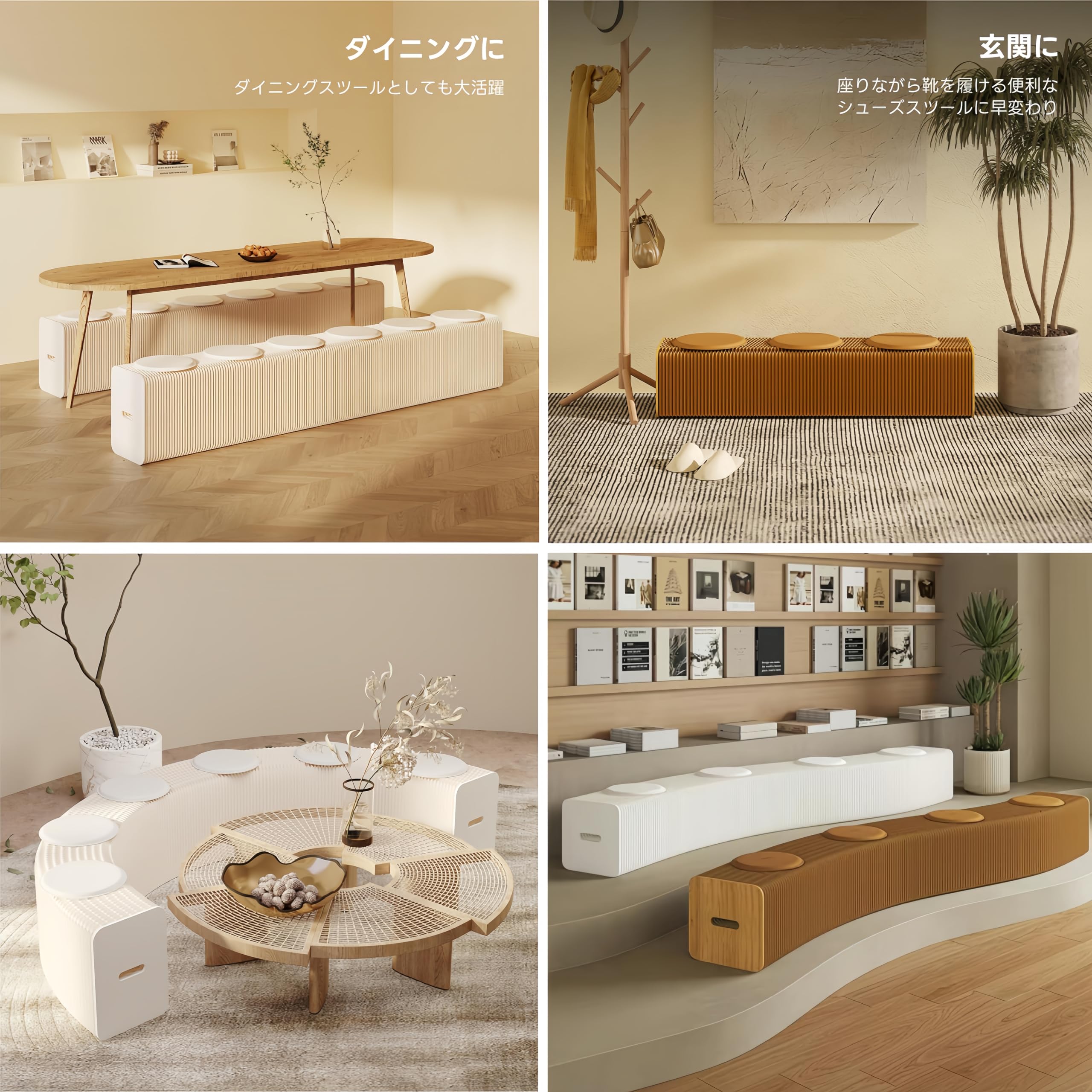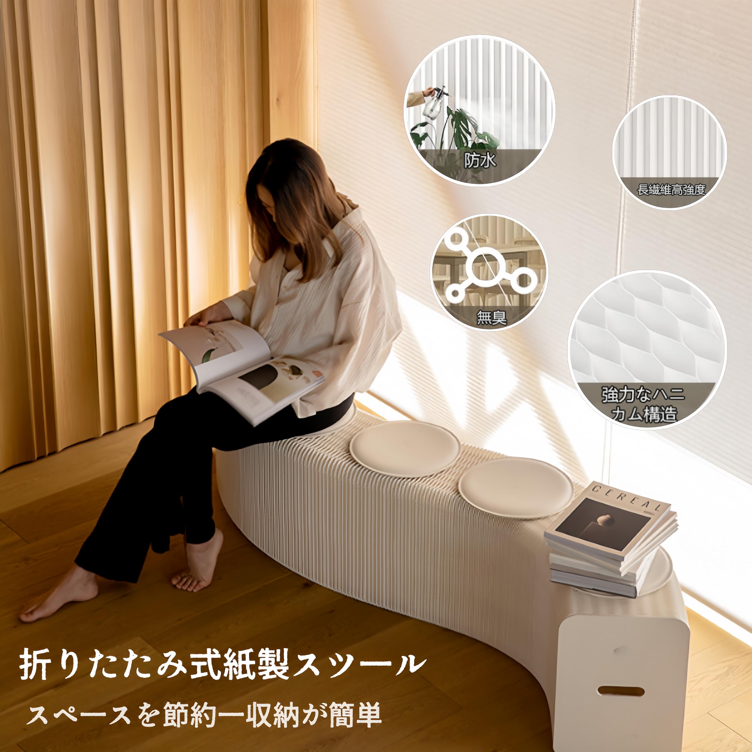 アコーディオン 椅子 紙 折りたたみスツール ペーパーベンチ スツール 折り畳み 伸縮 紙製ベンチ 軽量 コンパクト一屋内やレストランでのくつろぎに最適 省スペース ソファ (白, 高さ30cm 長さ1.5m + 革パッド3枚)
