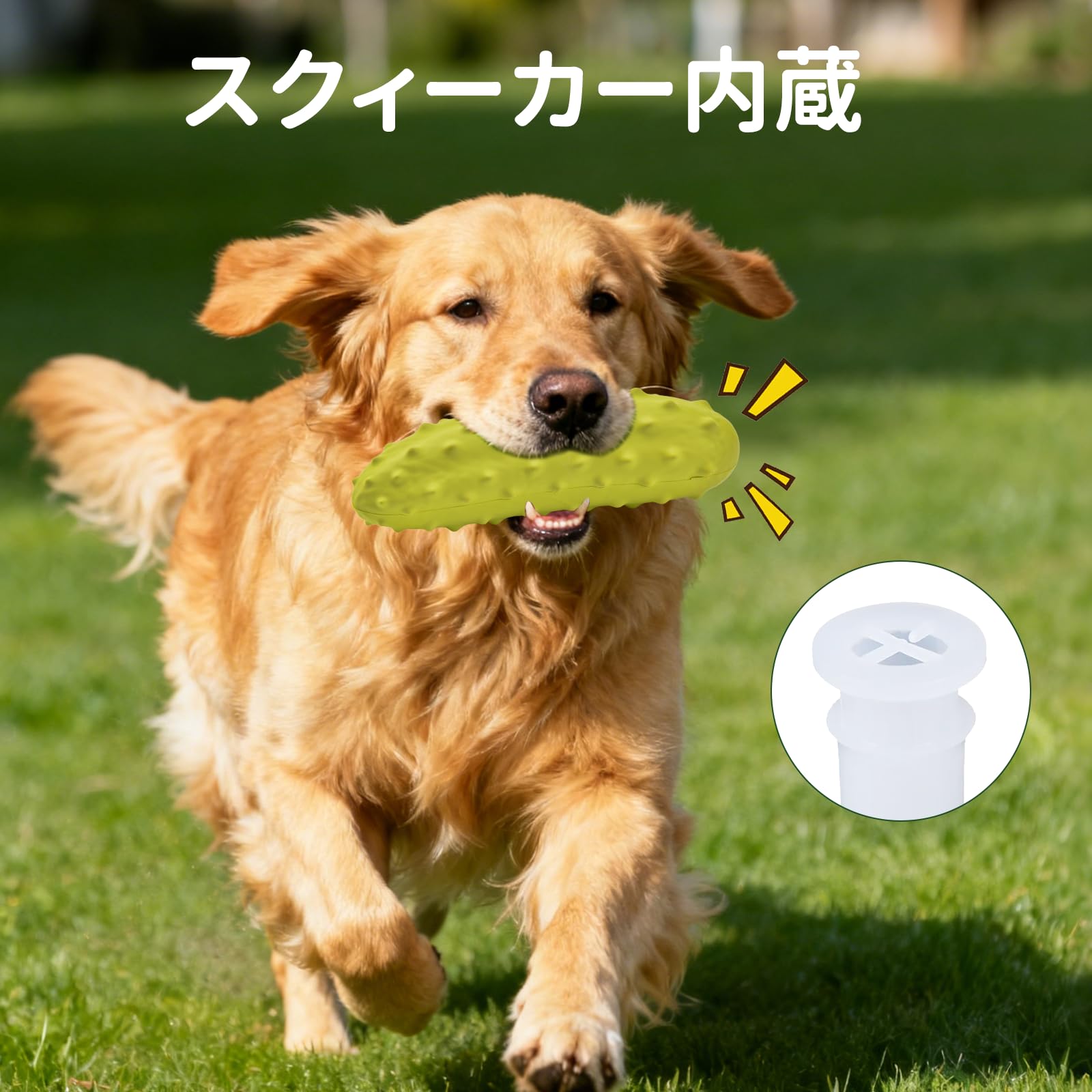LIFLIX 中・大型犬 おもちゃ 犬噛むおもちゃ 音が出る 耐久性 丈夫 天然ゴム 犬用玩具 歯磨き ストレス解消 キュウリ 黄色