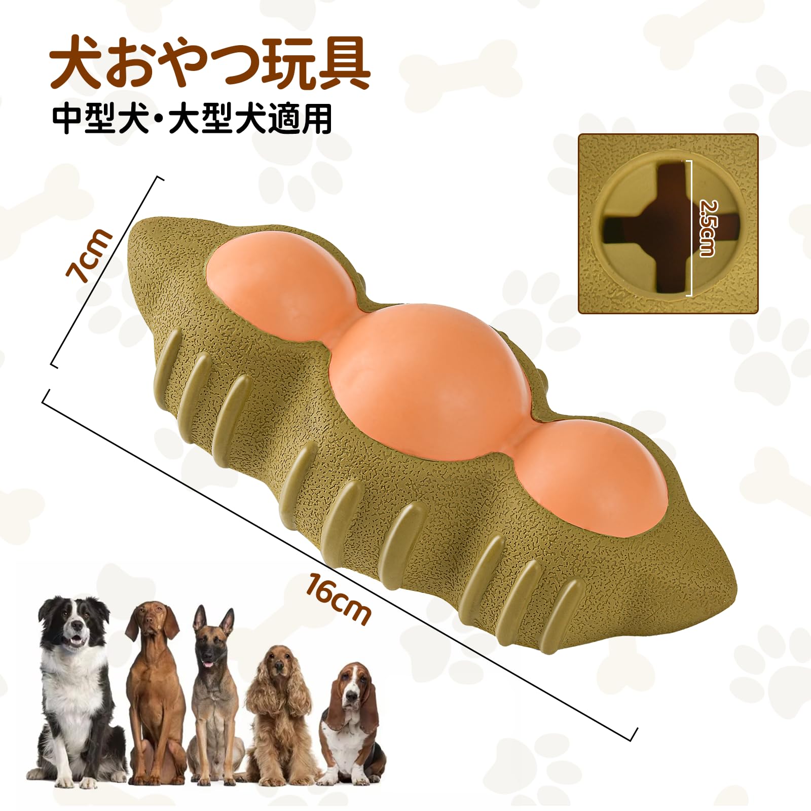 AUSCAT 犬おもちゃ 犬噛むおもちゃ 音が出る 中型犬・大型犬 ボール ラグビー 頑丈 天然ゴム 犬用玩具 (橙,L)