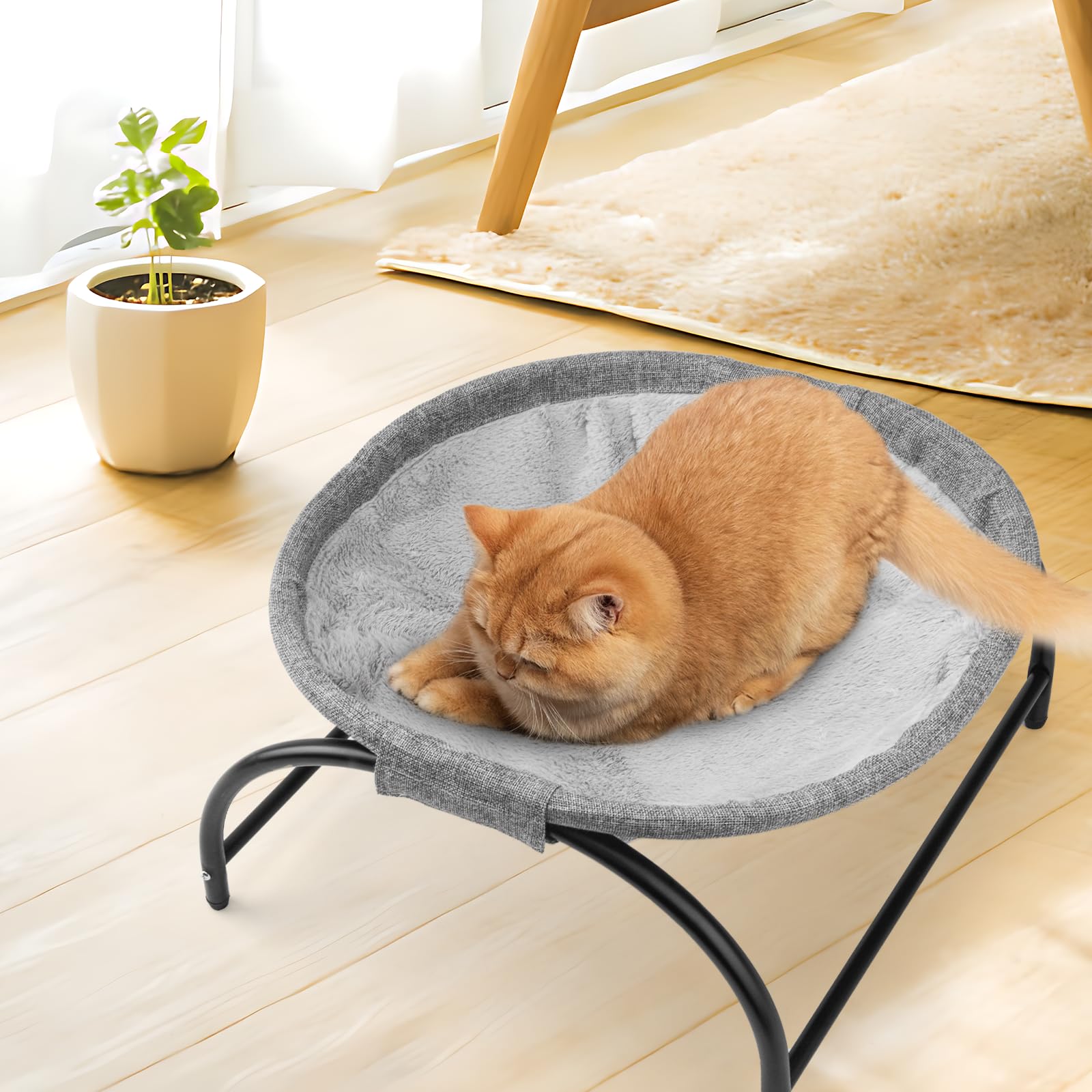 LIFLIX 猫ベッド ハンモック 柔らかい 猫 寝床 自立式 置き型 組み立て 取り外し可能 洗える フラシ天