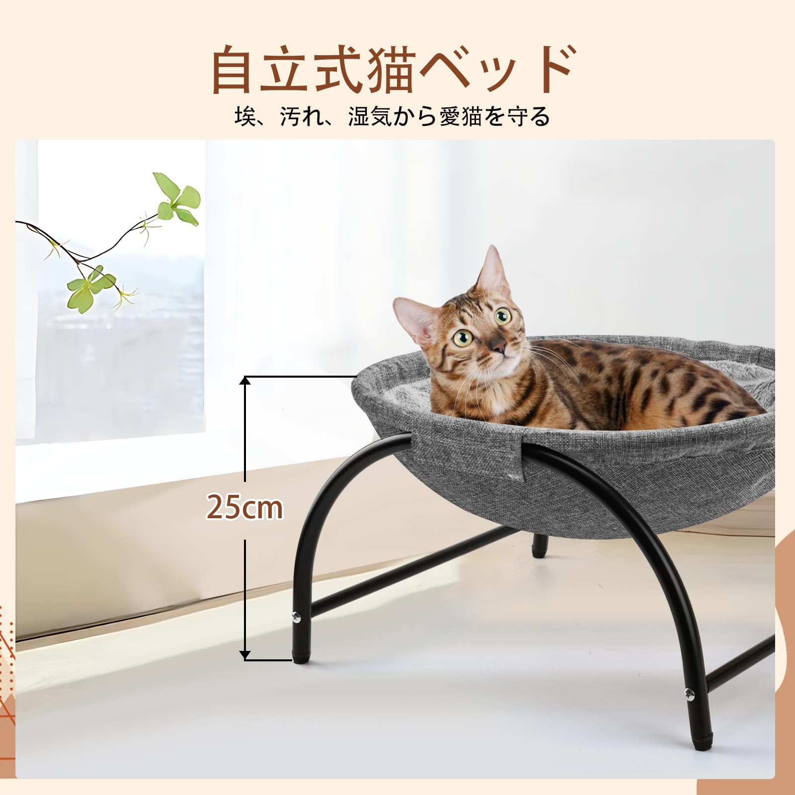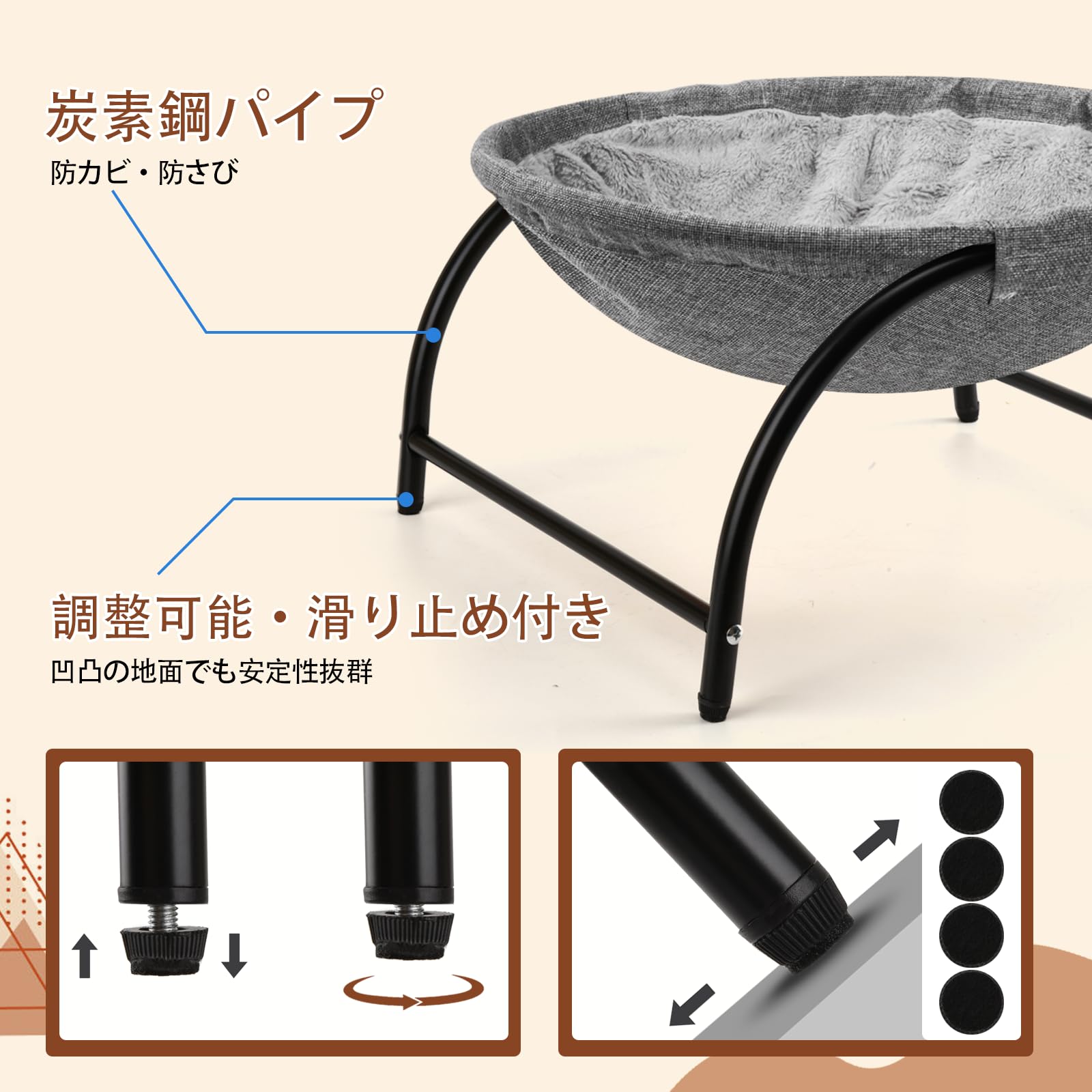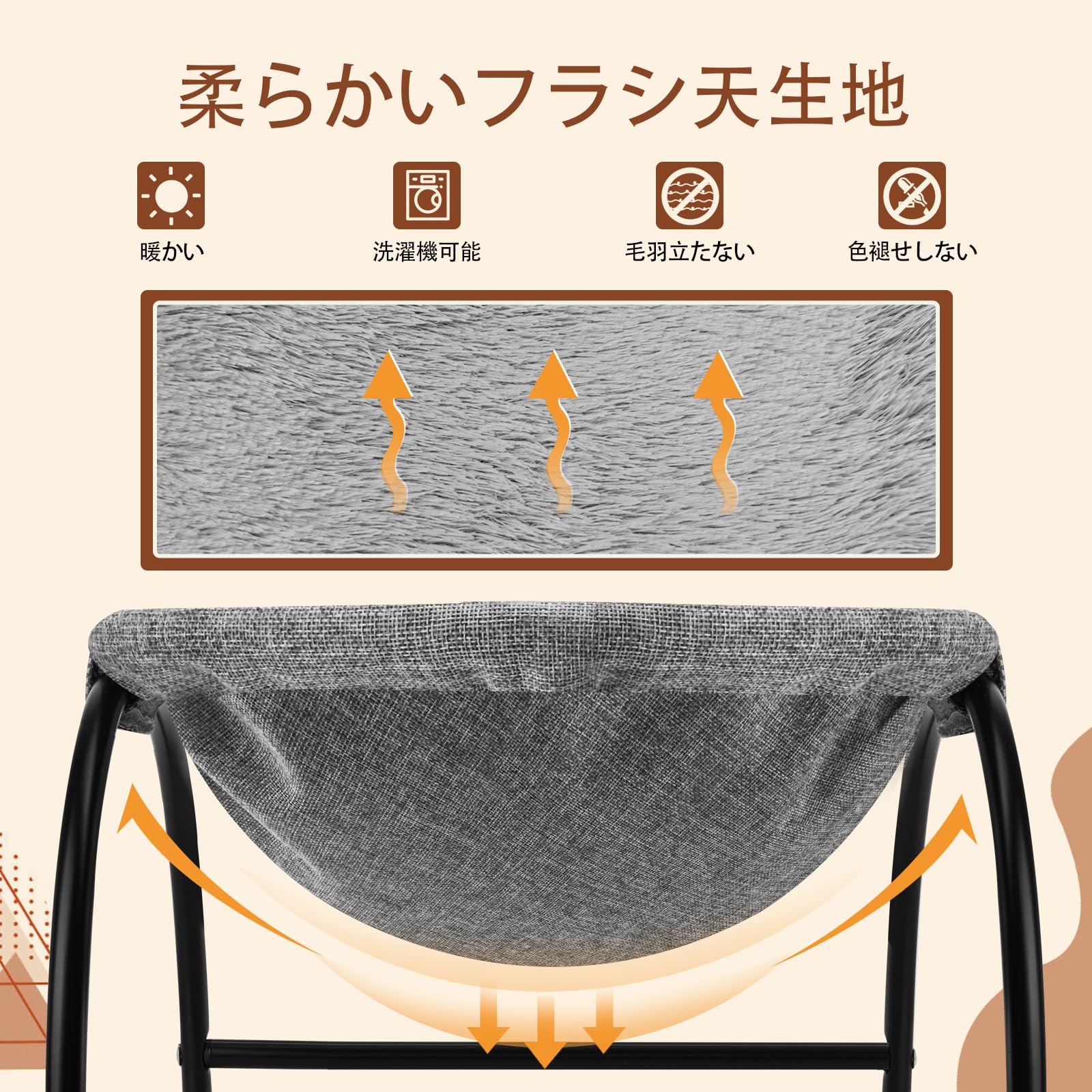 猫ベッド ペット ハンモック【2023最新型&30万件突破】犬猫用ベッド ぐっすり眠る ネコベッド 猫用 小型犬用 【猫ベッド特選・SGS取得品】ハンモック 猫寝床 猫用品 ペット用品 滑り止め 自立式 安定な構造 取り外し可能 通気性 防湿 防汚 オールシーズン適用 室内 户外 遊び場 耐荷重15kg 58*42cm 丸洗い 取り付け簡単2年保証 (ファータイプ)
