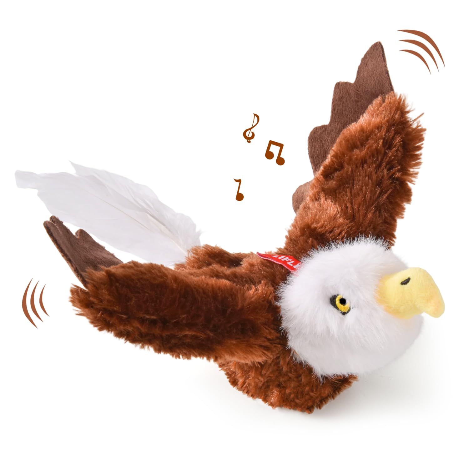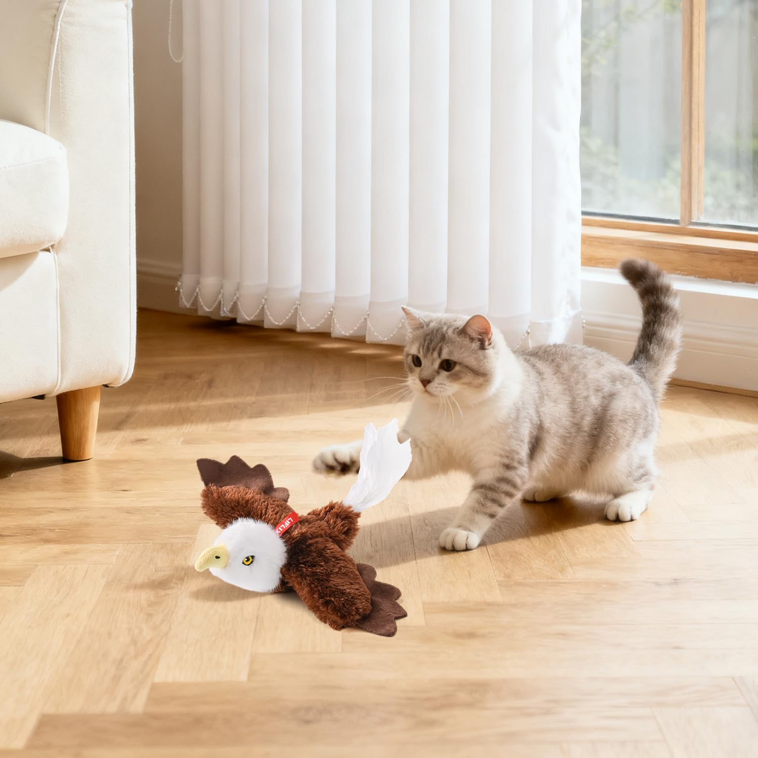 LIFLIX 猫 電動おもちゃ ぬいぐるみ玩具 羽ばたき鳥 リアルな鳥鳴き声 タッチ起動 またたび入り USB充電式(茶色)