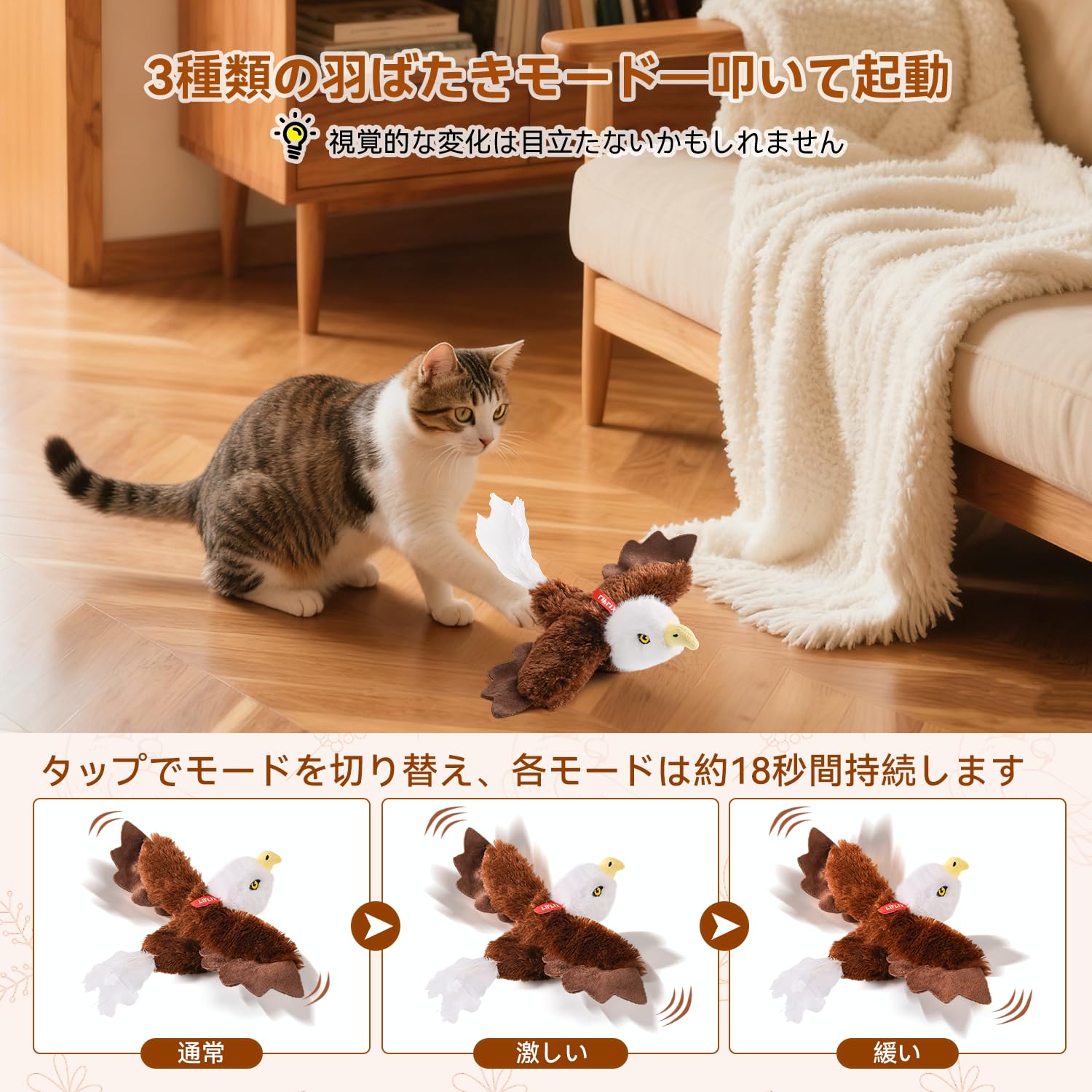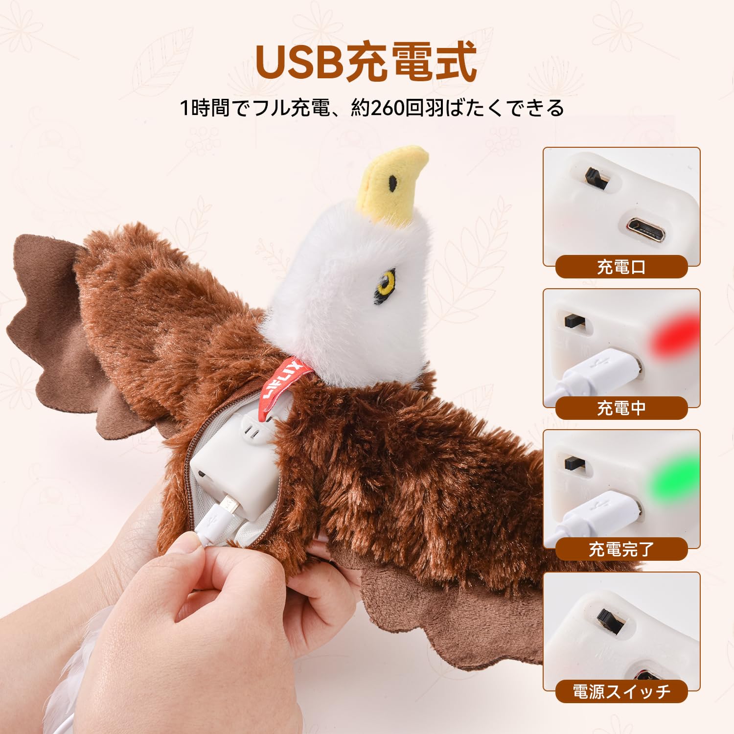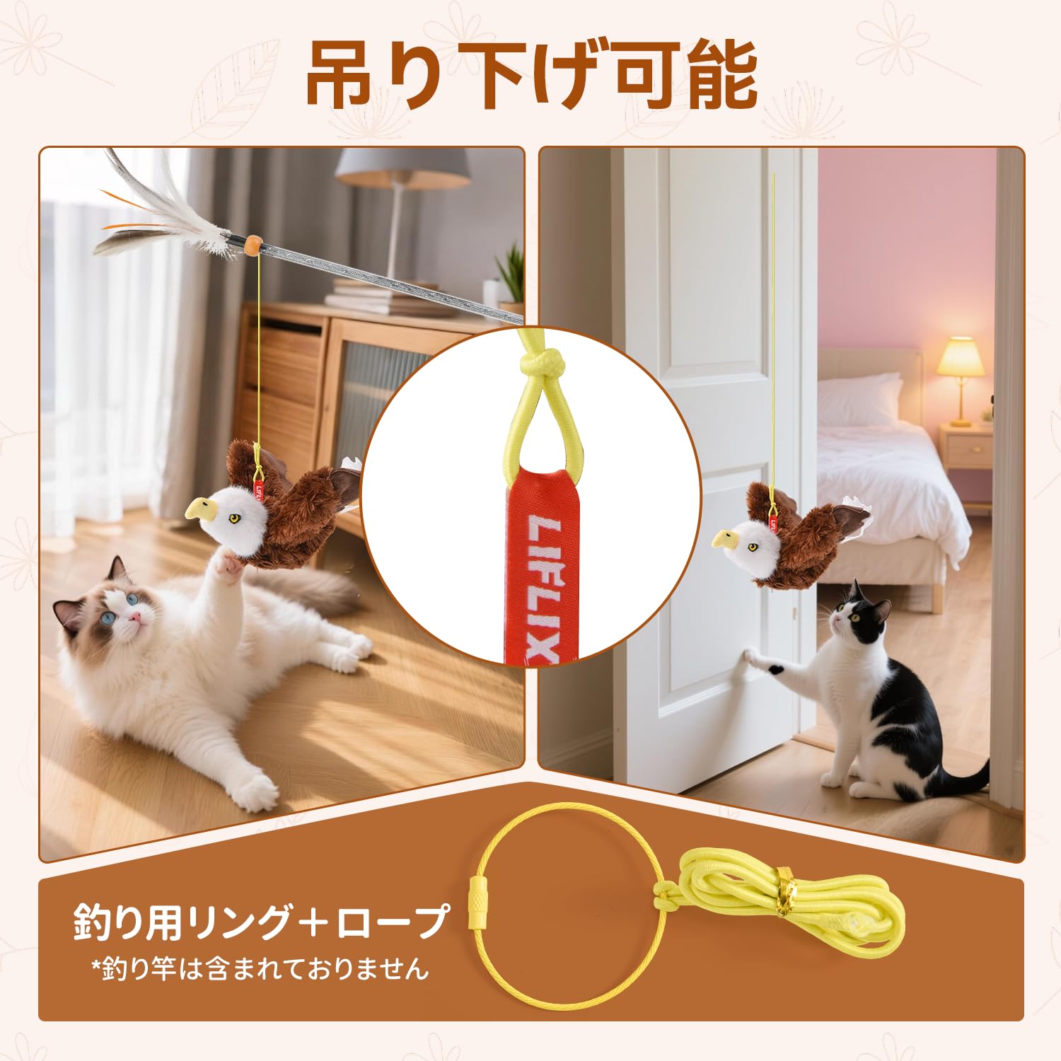LIFLIX 猫 おもちゃ またたび玩具 電動 動くぬいぐるみ 猫じゃらし 音が出る 羽ばたく 充電式 鳶