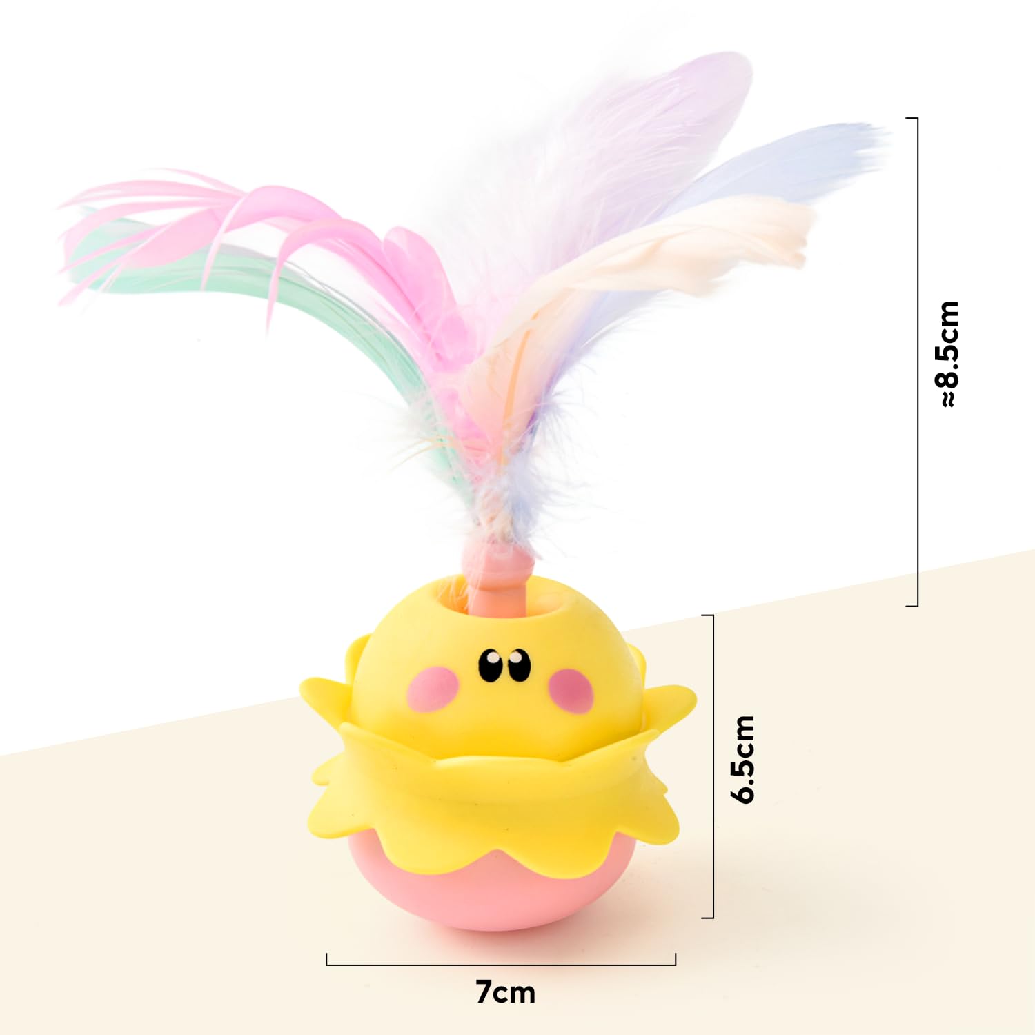 Bateruni 猫 おもちゃ 玩具 倒れない 回転ボール 羽の猫じゃらし付き 知育玩具 くるくる 運動不足対策 ストレス解消 インタラクティブおもちゃ 猫用品 ペット用品 ピンク