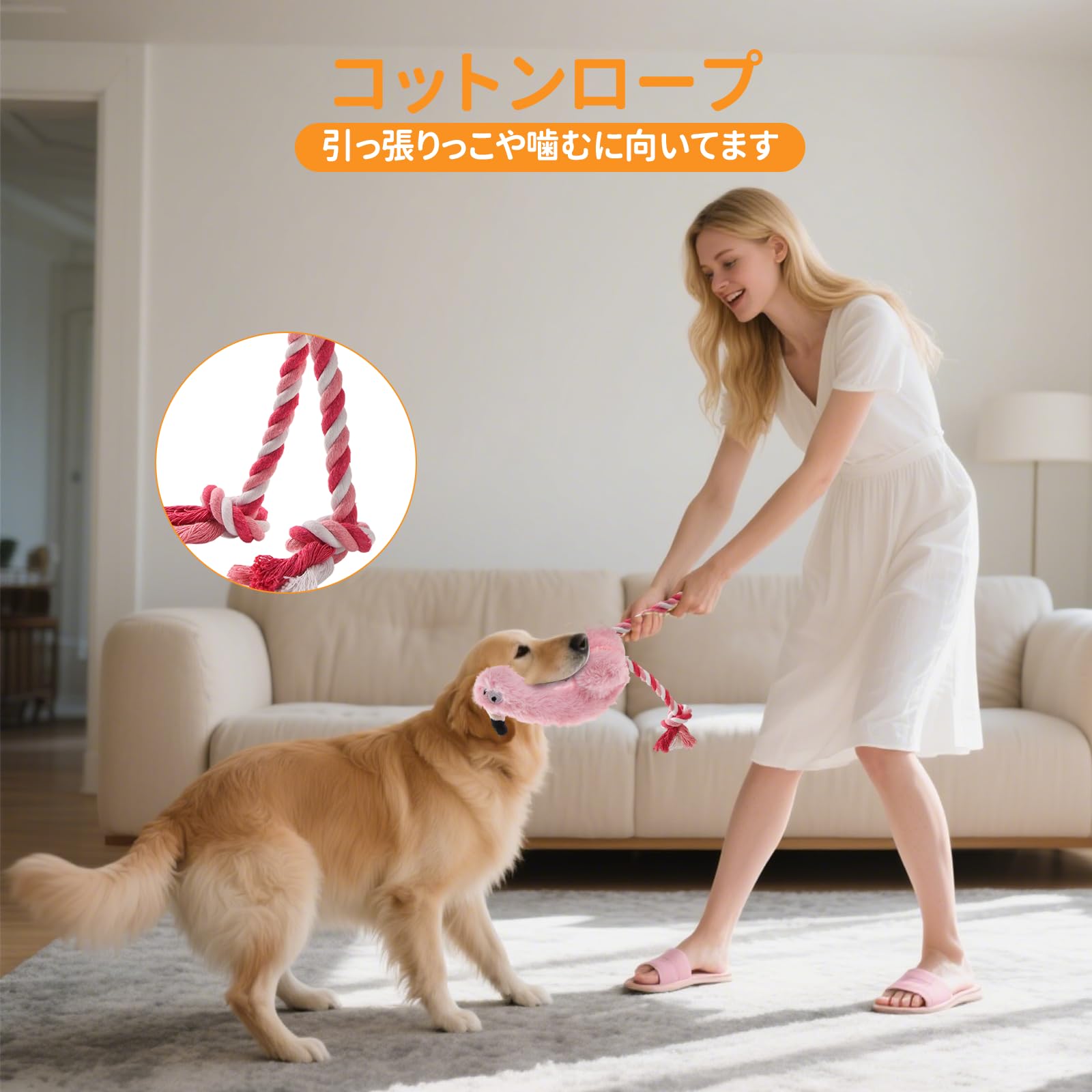 犬おもちゃ 犬用噛むおもちゃ玩具 犬ロープおもちゃ 中型犬 大型犬 ペット用 丈夫 天然コットン 犬用ロープ玩具 ストレス解消 清潔 歯磨き 耐久性 小・中・大型犬に適応
