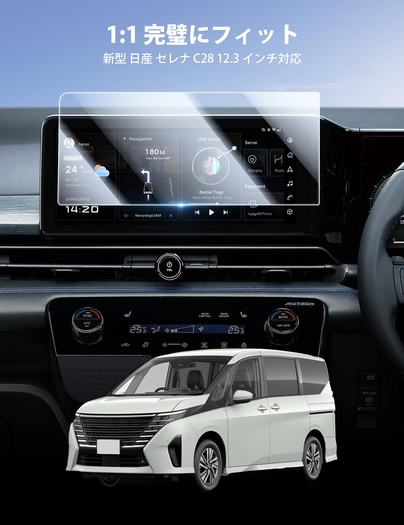 アルファード ヴェルファイア 40系 後席ディスプレイ 強化ガラス 保護フィルム リアモニター 14インチ 高透過率 高感度 指紋防止 自己吸着 壊れたら再送サービス 100%品質保証