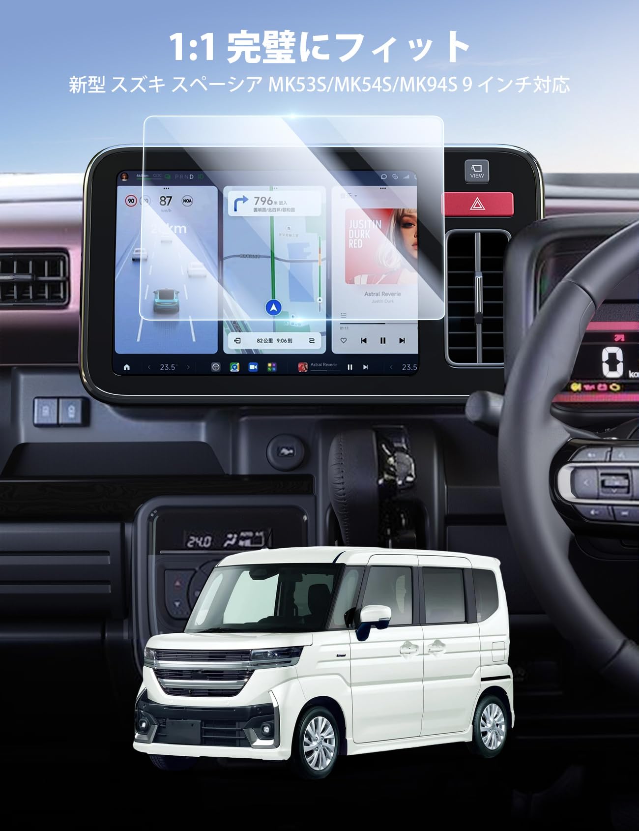Lamicall スズキ スペーシア スペーシアカスタム 3代目 専用 ナビ保護ガラスフィルム 9インチ 1:1高精度カット 高透過率 9H強化ガラス フィルム 傷防止 高感度タッチ 撥水撥油 液晶保護フィルム 耐衝撃 反射防止 画面保護シート 自己吸着 貼付け簡単 スクリーン プロテクター カーナビ アクセサリー
