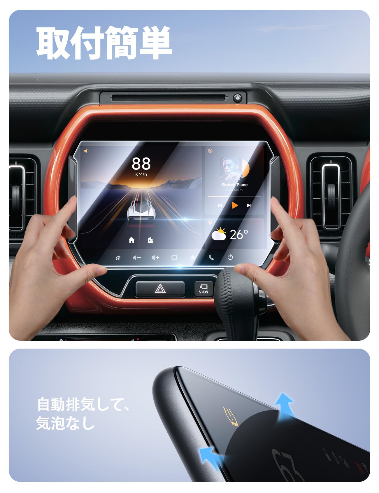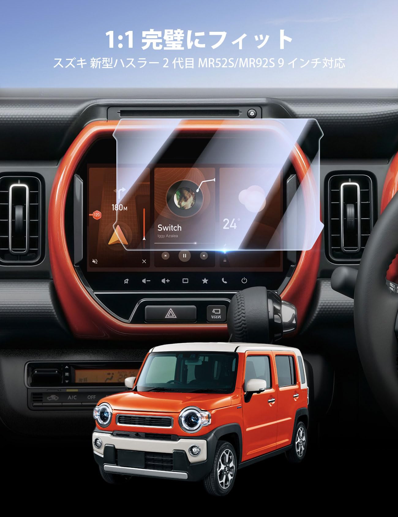 LANTU 【傷防止強化】ガラスフィルム スズキ 新型 スペーシア 専用 9インチ カーナビ ガラス フィルム スペーシアカスタム MK53S MK54S MK94S ナビ 保護フィルム 9H硬度 指紋防止 キズ防止 自己吸着タイプ 汚れ防止 カーナビ液晶保護フィルム ディスプレイオーディオ アクセサリー カスタム パーツ