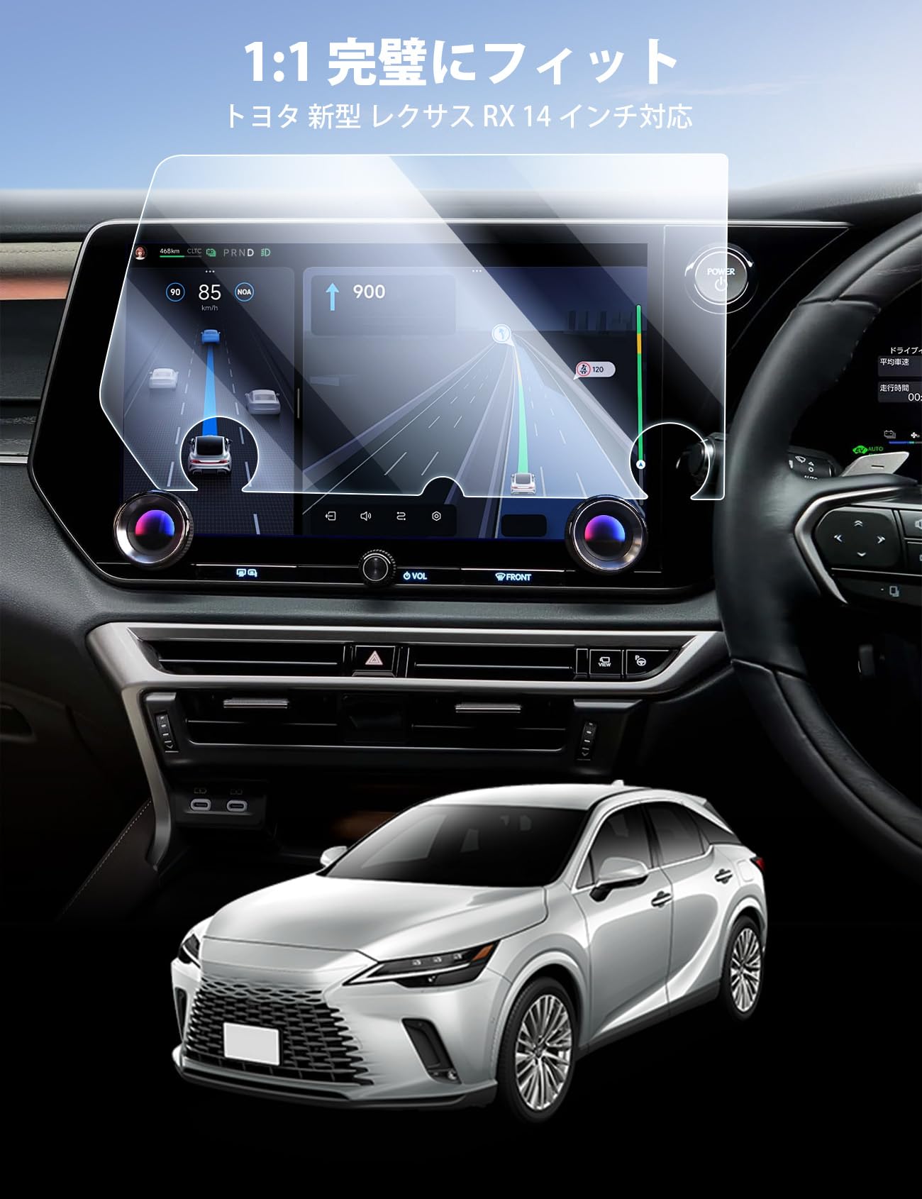 Lamicall トヨタ レクサスRX専用 ナビ保護ガラスフィルム 14インチ 1:1高精度カット 高透過率 9H強化ガラス フィルム 傷防止 高感度タッチ 撥水撥油 液晶保護フィルム 耐衝撃 反射防止 画面保護シート 自己吸着 貼付け簡単 スクリーン プロテクター カーナビ アクセサリー