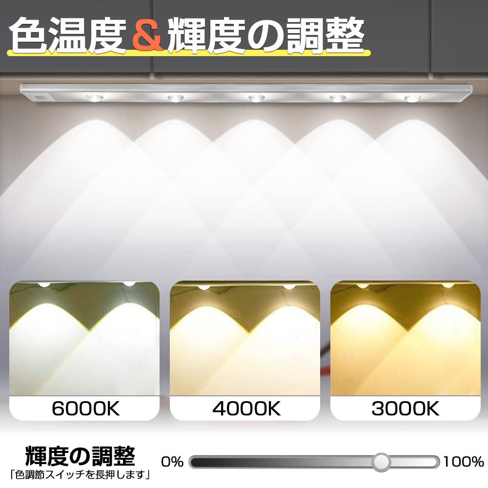 HAIKUSOUBI 人感センサーライト 雰囲気ライト キッチンライト LEDライト 80cm 室内 バーライト 明暗センサー USB充電式 三段階調色(白色、昼白色、電球色) 無段階調光 磁石式 小型 120°感知角度 取付簡単