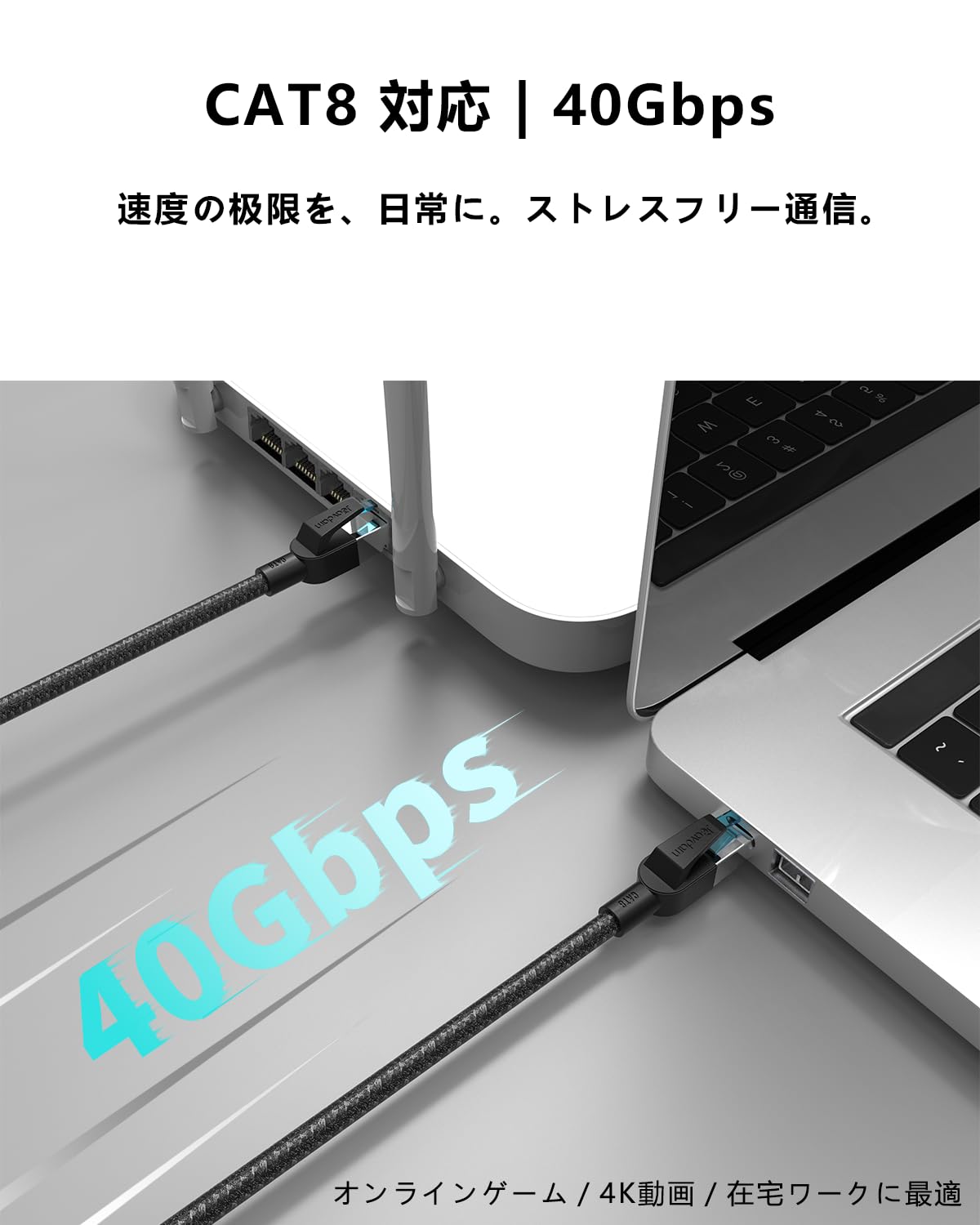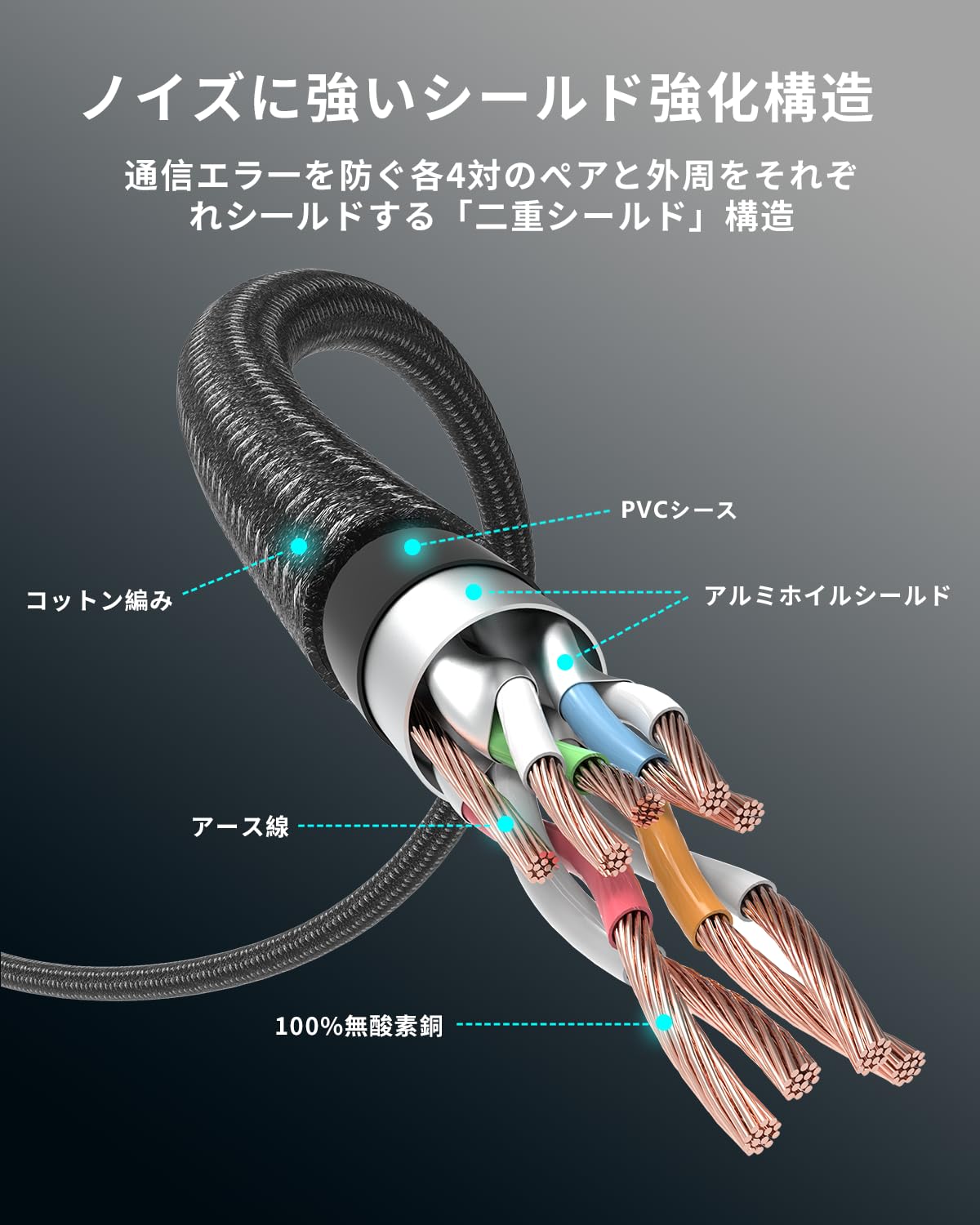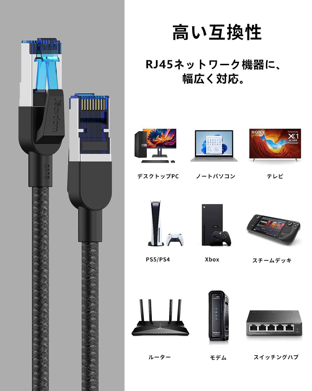 Jeavdarn LANケーブル CAT8 1m 超高速 カテゴリー8 40Gbps/2000MHz CAT8準拠 高耐久ナイロン素材採用 モデム ルータ PS3 PS4 Xbox PC対応