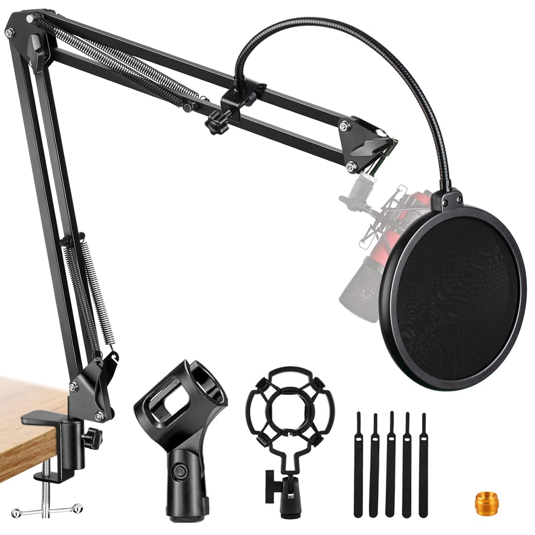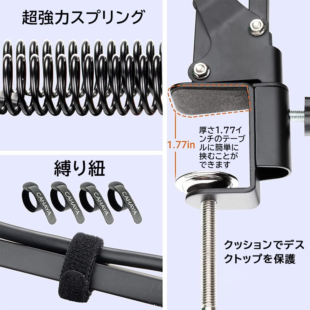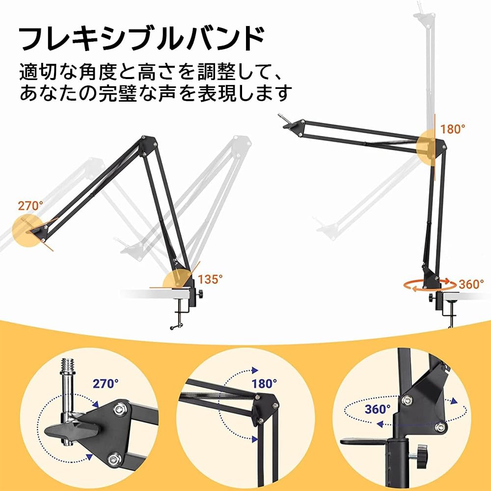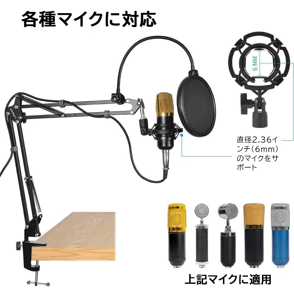 ZealSound マイクスタンド マイクアーム 卓上 コンデンサーマイク用 3/8インチから5/8インチのネジアダプター付き 固定力が強い デスクアーム式 角度調節可能 生放送 収録 配信 実況等対応可 耐荷重1KG 日本語取扱説明書付き