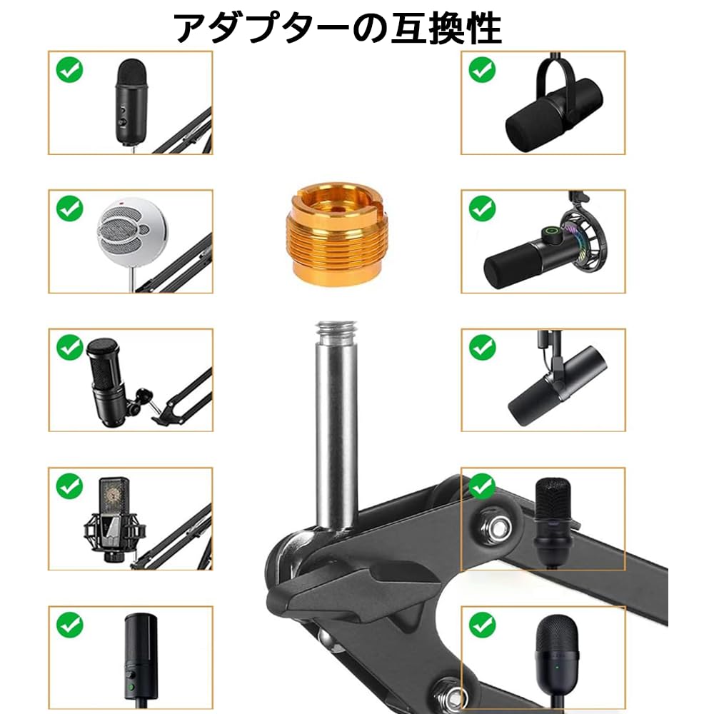 Blue Yeti X ブームアーム用 YUZUHOME 高耐久 調整可能 Blue Yeti Nano マイクスタンド 3/8インチから5/8インチのネジアダプター付き ブルーシリーズマイクと互換性あり ホワイト