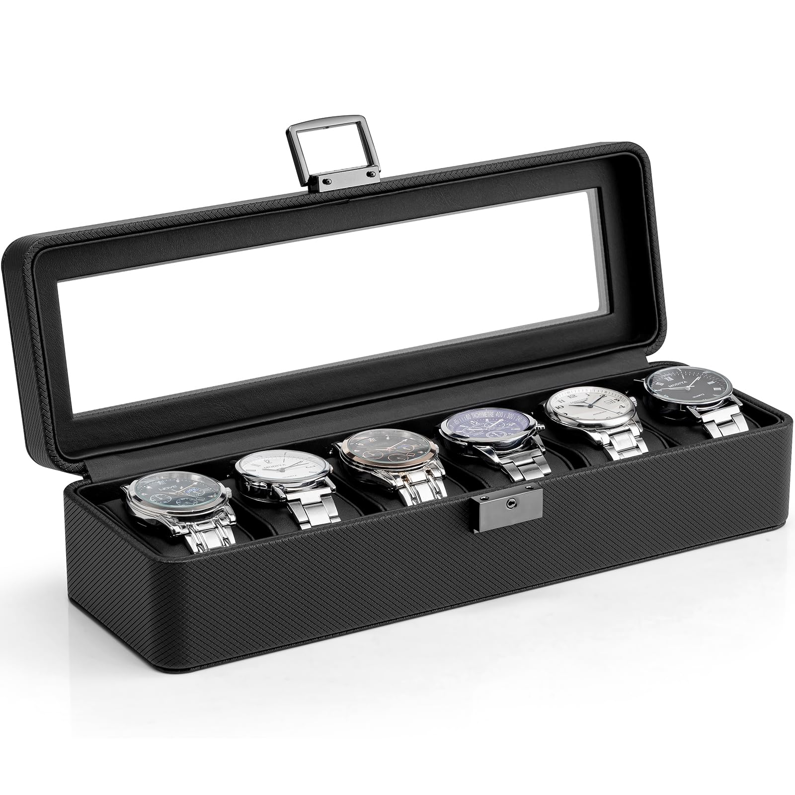 Vlando 時計ケース PU製 男性 収納ボックス アクセサリーケース アクセサリー 収納 誕生日プレゼント(ブラック, 6本)