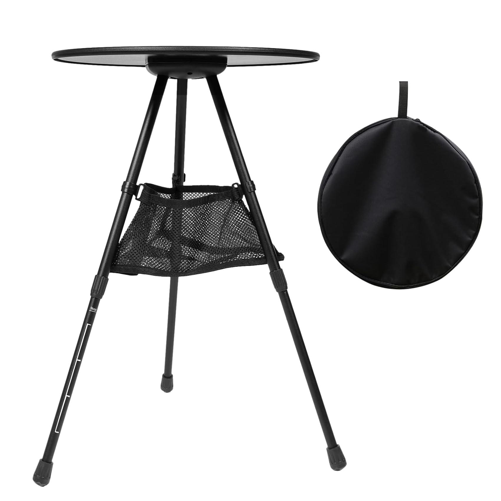 YFFSFDC キャンプ テーブル 折り畳み アウトドア 高さ調整 5段階 軽量 コンパクト 三脚 アウトドア サイドテーブル 焚き火テーブル ベランダ/ガーデン/屋内/屋外 収納バッグ付き ブラック