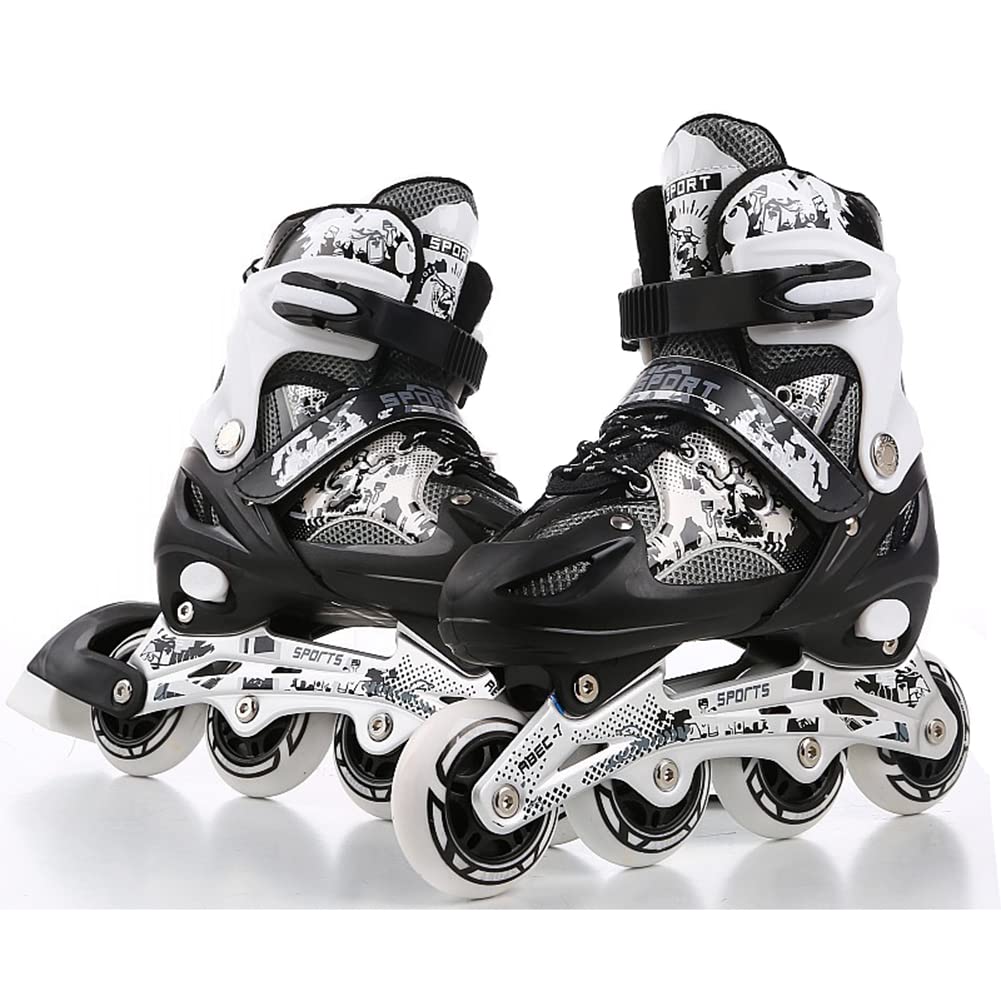 インラインスケート 初心者向け 子供用 ローラースケート Inline skate 子供 ローラー スケート 大人用 サイズ調整可能 ローラーシューズ 発光 静音 通気 フラッシュホイール アウトドア プレゼント S-L(ブラック、M)