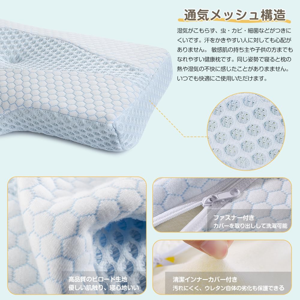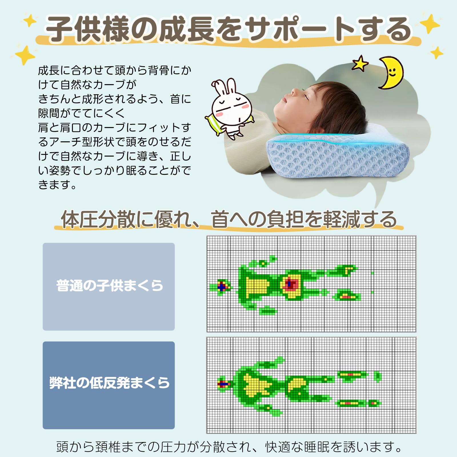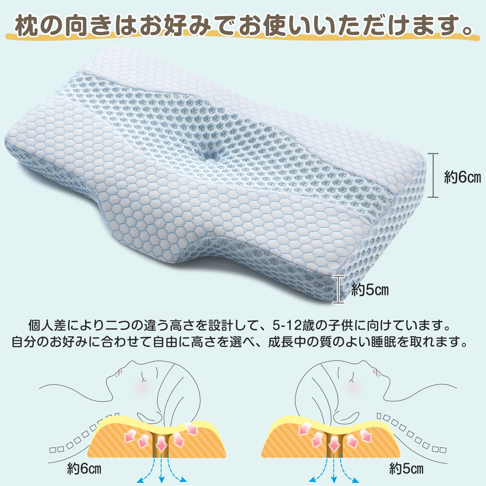 MyeFoam 子供 まくら 5~12歳 中空設計 設計 子供枕 抗菌 防ダニ 汗とり 通気性 洗えるカバー付き 高さ調整可 男女兼用 寸法45*23cm