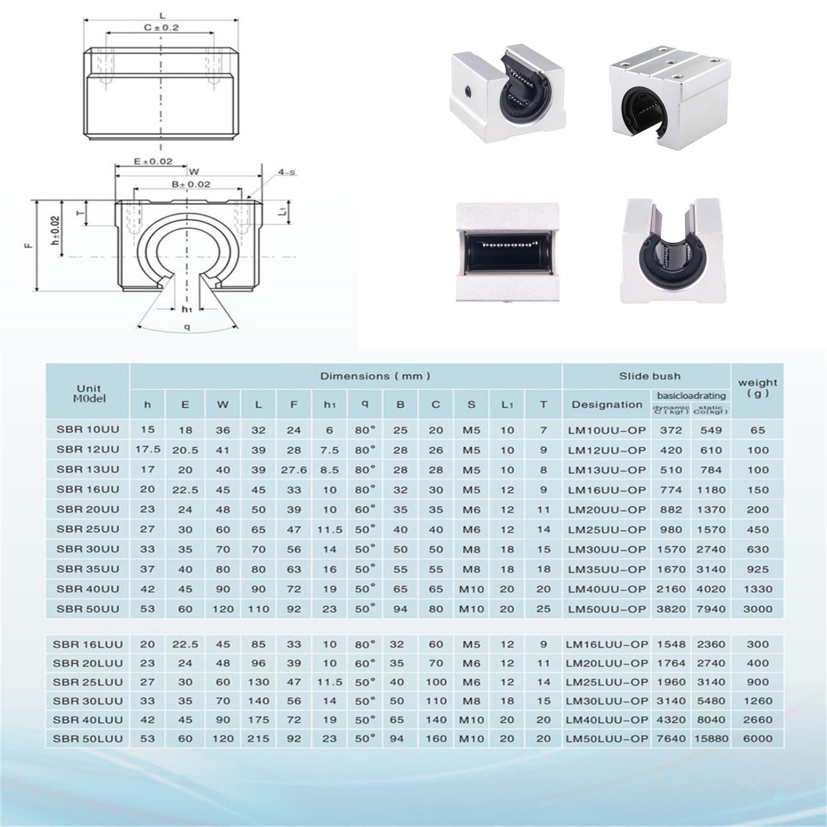 特徴:CNCベアリングブロックは高品質のアルミニウム合金素材で作られており、ベアベアリングと耐久性が向上し、高硬度、低騒音、防錆性があります。当社のボールベアリングスライダーは標準化された設計を採用しており、スムーズな動き、低摩擦、高剛性、低騒音という利点があります。この線形ガイドスライドブロックは、CNC工作機械、機械加工センター、自動機械、繊維機械、自動車で広く使用されており、複数の産業向けの汎用ソリューションを提供します。仕様:材質:アルミニウム合金モデル:SBR12UU全体のサイズ: 39 x 41 x 28mm色:シルバーパッケージ内容:1x リニアスライドブロック