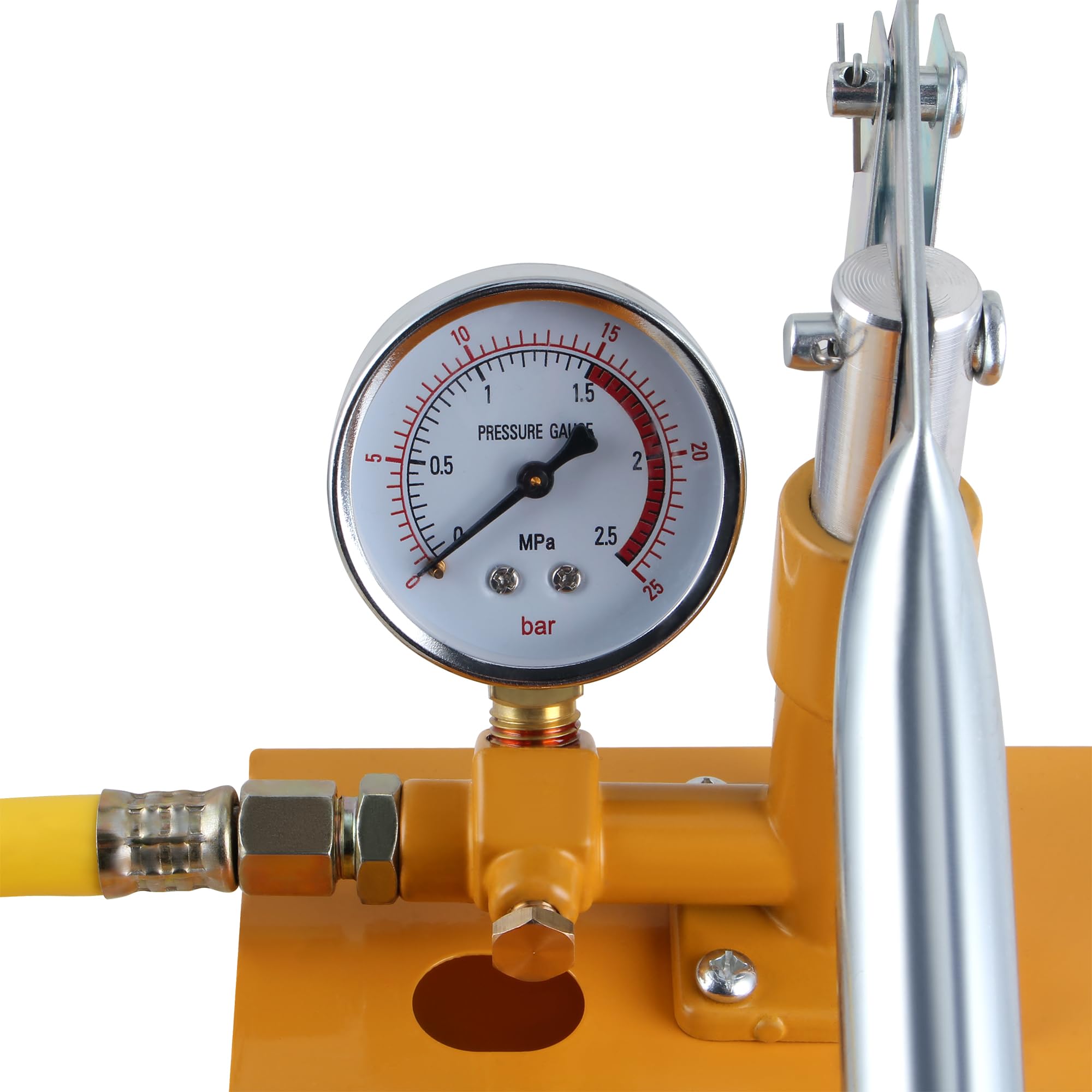 KITISUNI 水圧テストポンプ 2.5MPa 25 キロ水圧テスター 高油圧手動圧力試験ポンプ 油圧テストツール 圧力計・タンク付 イエロー