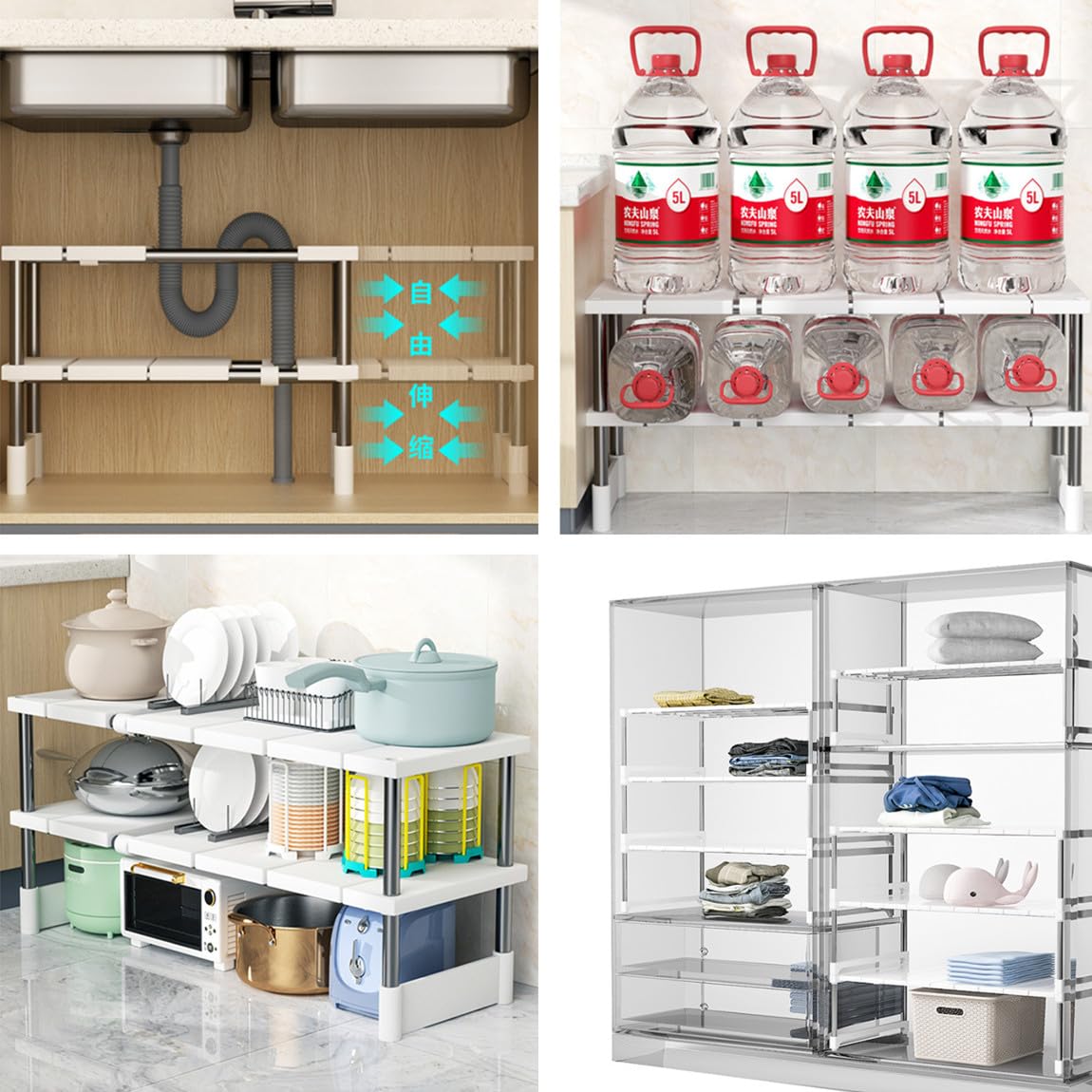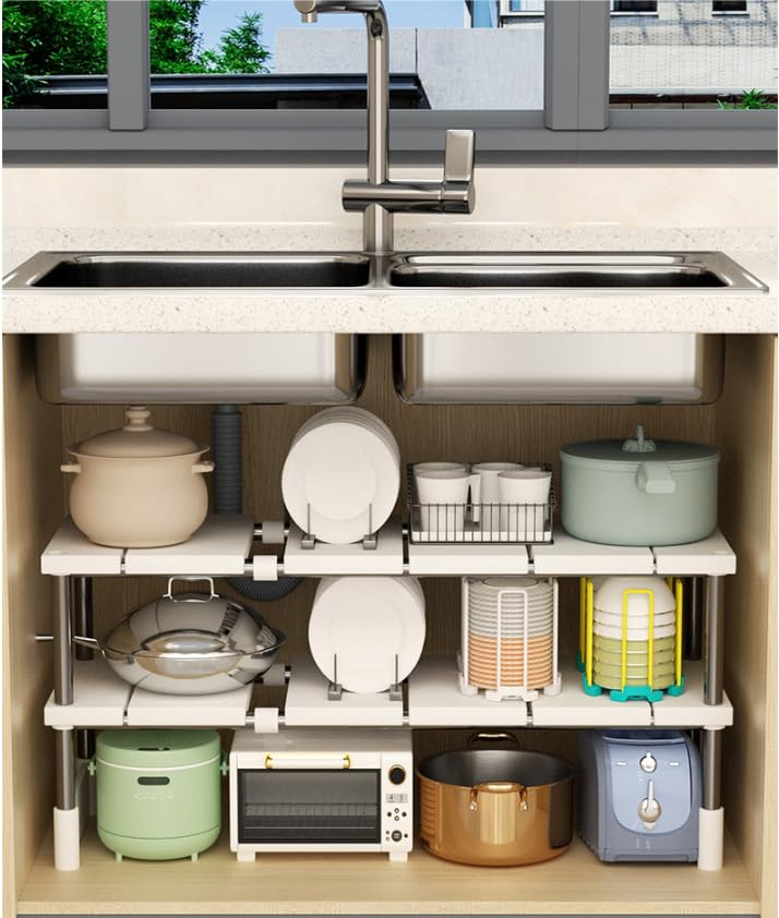 伸縮収納棚 ホワイト キッチン クローゼット 洗面台下 収納ラック シンク下フリーラック キッチン収納棚 横幅調整可能 プレート キッチンラック シンク下 収納 伸縮式 ラック 棚 伸縮 簡単組立 伸縮25-45長さ*22幅*17高さ (白い色)