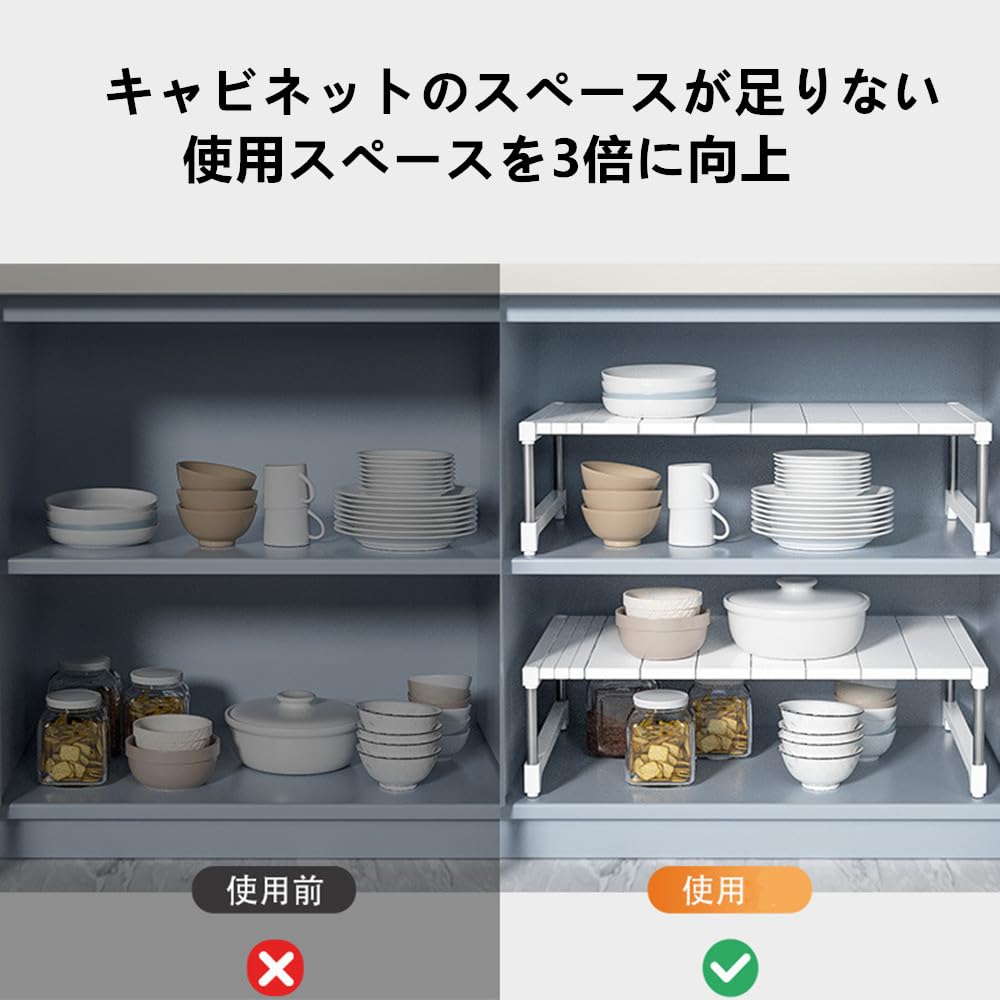 多機能 伸縮収納棚 物置棚 白 約W54xD10XH12.5cm キッチン収納棚 家庭用 省スペース 皿 ストレージ フードハットの保管 調味料ストレージ (白)