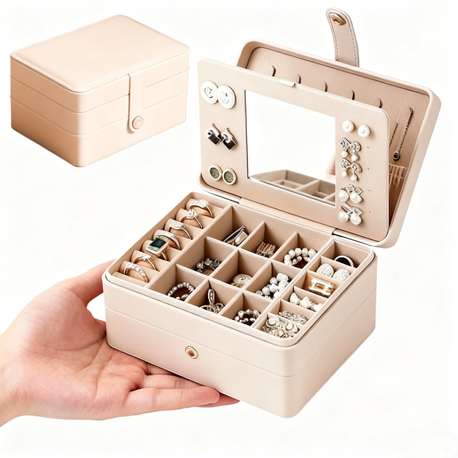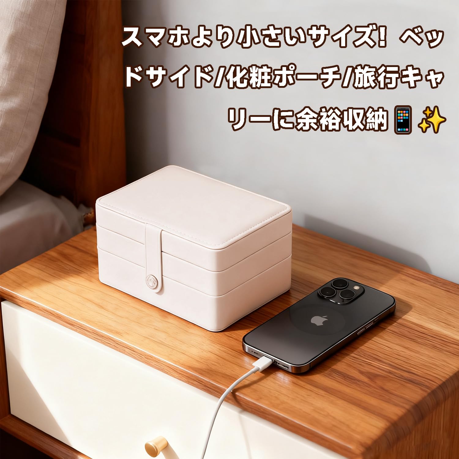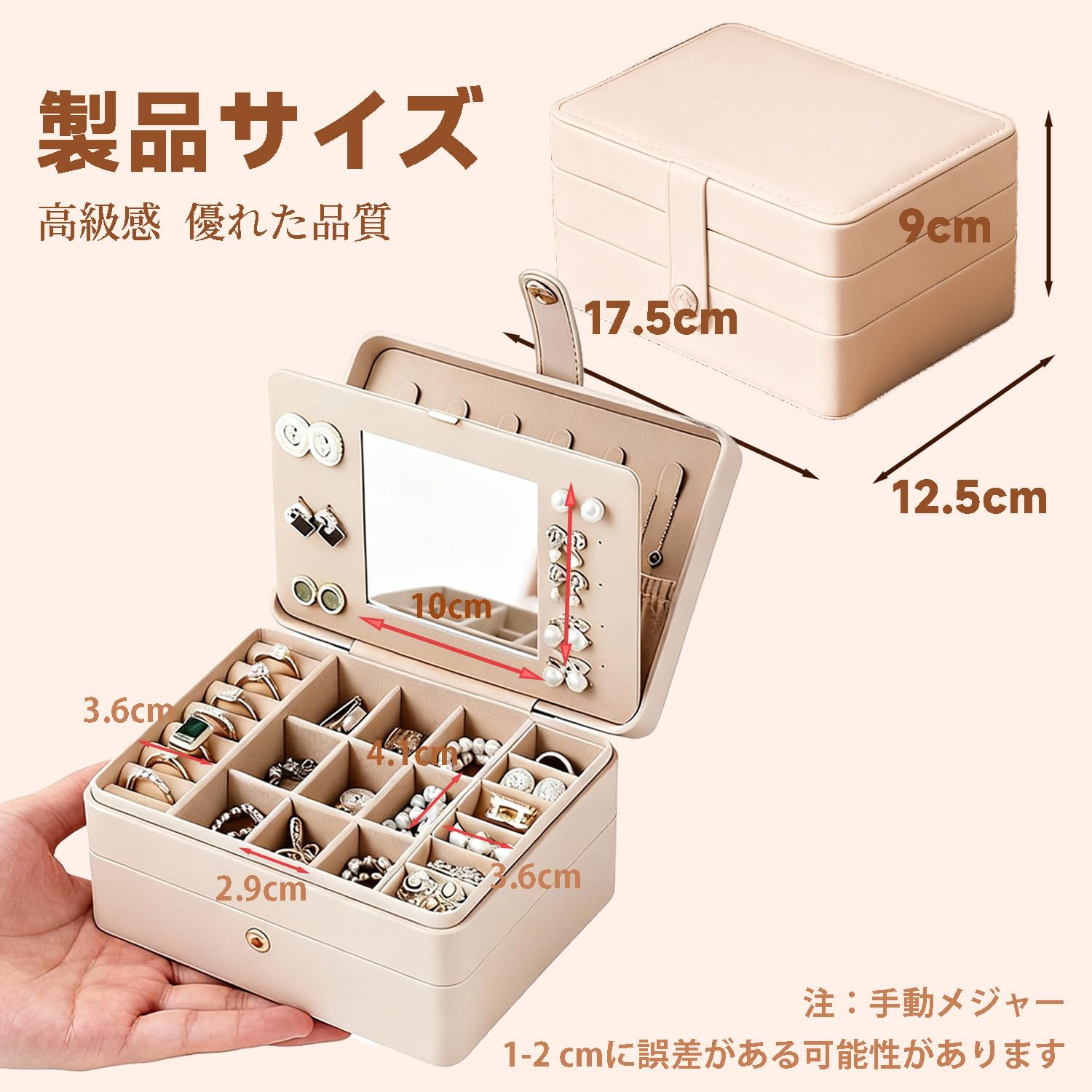 Aikennジュエリーボックス 大容量 3層 アクセサリーケース おしゃれ PUレザージュエリー アクセサリー 収納 鏡付き17.5*12.5*9cm 持ち運びケース 旅行用 小型 宝石箱 指輪 ネックレス イヤリング ピアス ブレスレットなど小物入れ 着脱式の仕切り付き ギフトアイデア (ホワイト)