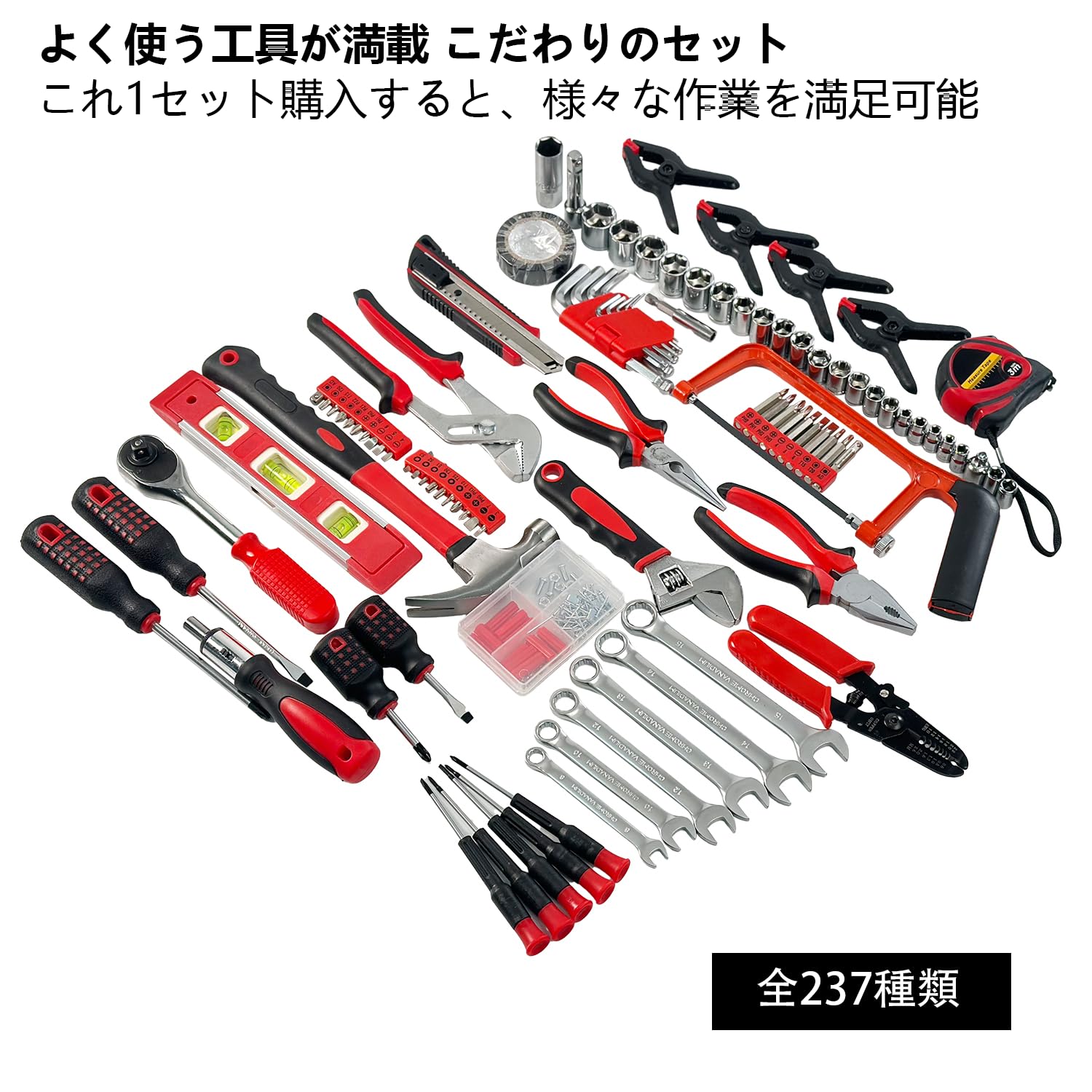 Hantinstom 工具セット 237点組 ホームツールセット 道具セット 作業工具 DIY 家具の組立 住まいのメンテンス用 便利 収納ケース付き 修理道具セット 初心者も向け 自動車バイク整備 レッド