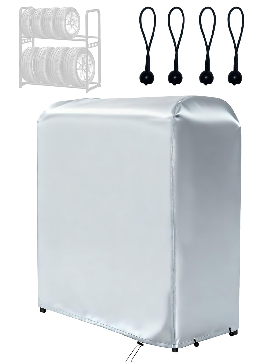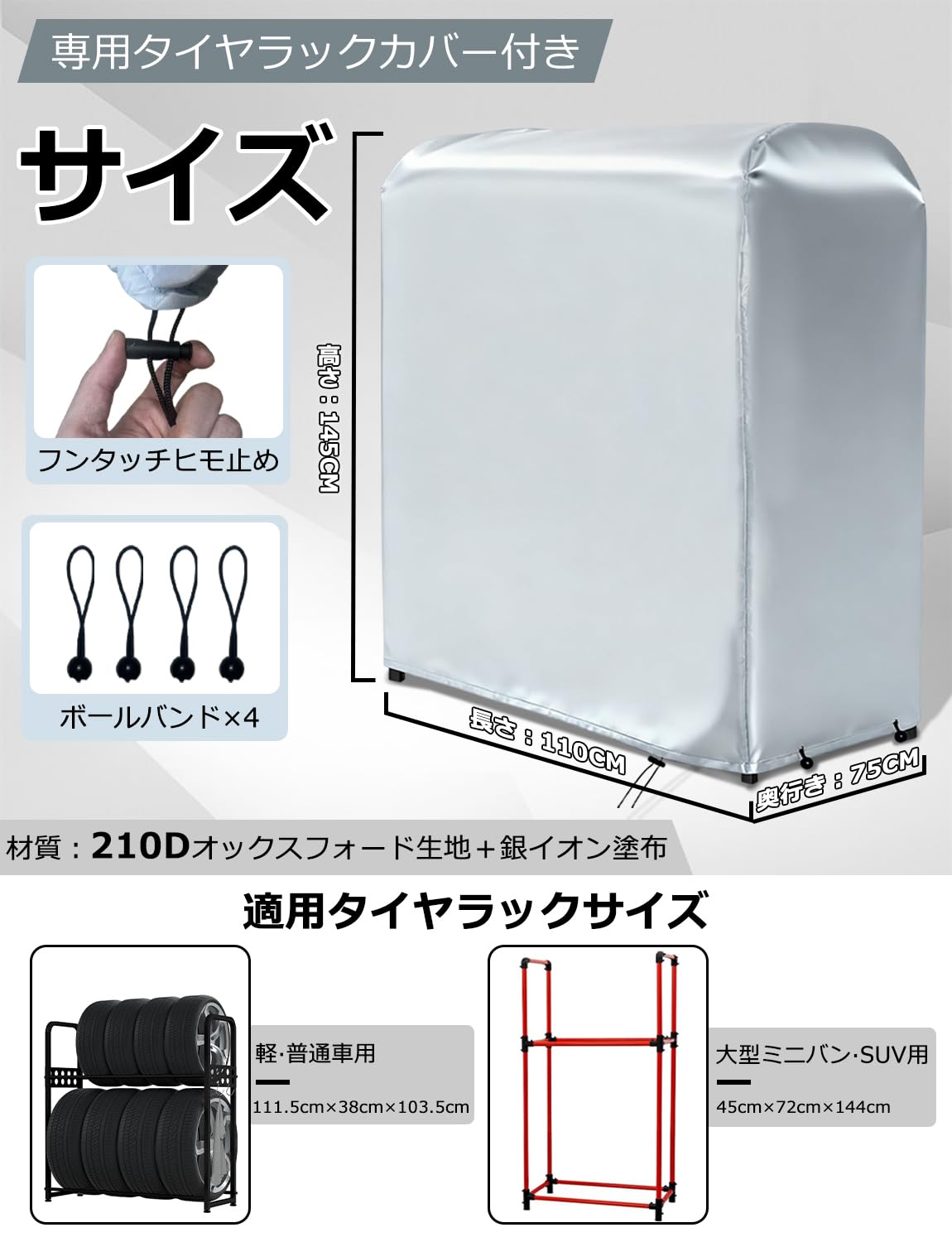 Fe.Takeo タイヤラックカバー 厚手 防水 屋外 【長さ110cm×奥行75cm×高さ145cm】 ボ一ルバンド4個付き 防風 紫外線防止 210D 防雨 劣化・汚れ防止 タイヤ収納カバー