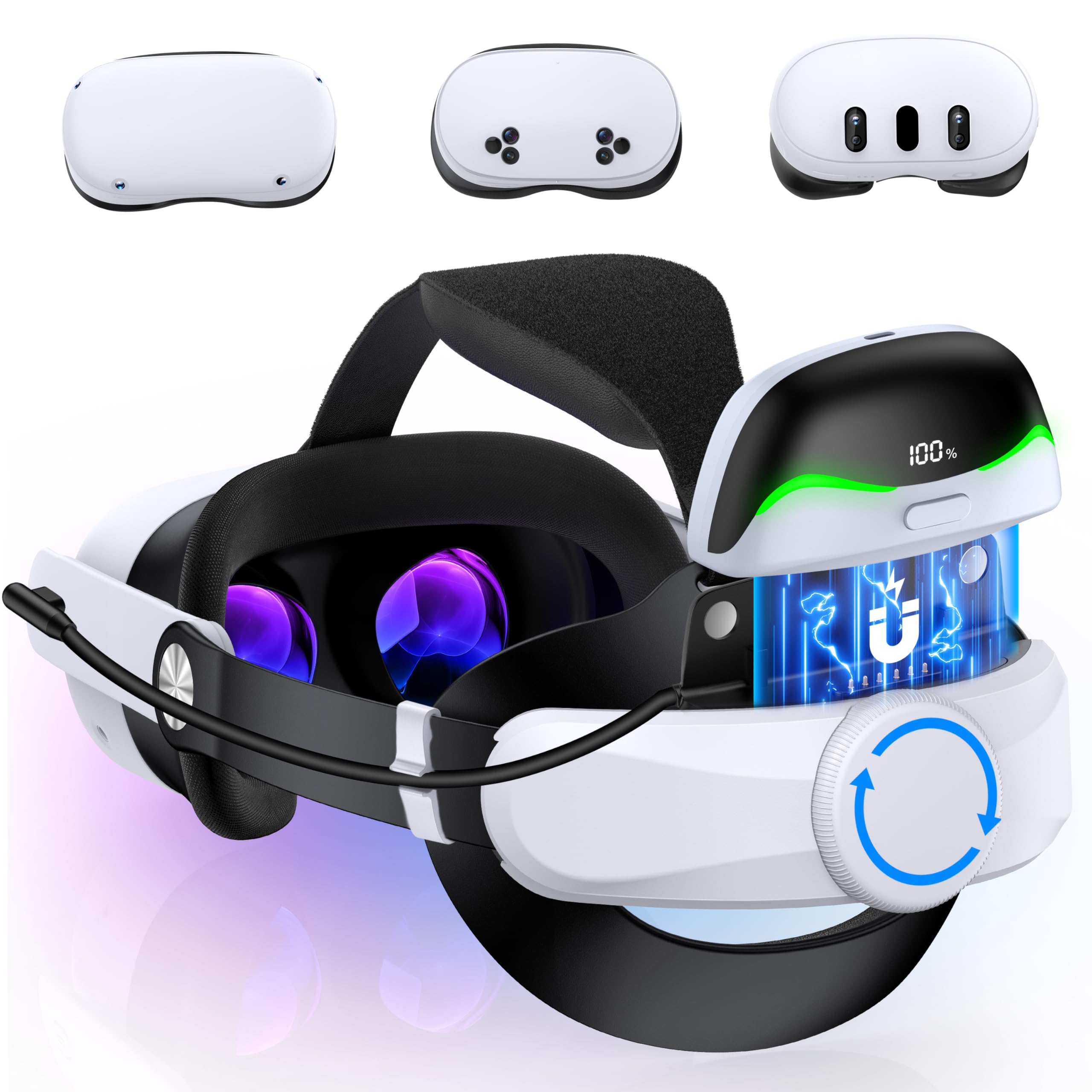 Elekasumi Meta Quest 3/Quest 3S/Quest 2用ヘッドストラップ VRヘッドセット用 7500mAh大容量磁気バッテリー内蔵 ダブルノブ調整式 高速充電対応 快適フィット メタクエスト3/3s/2用バランスストラップ