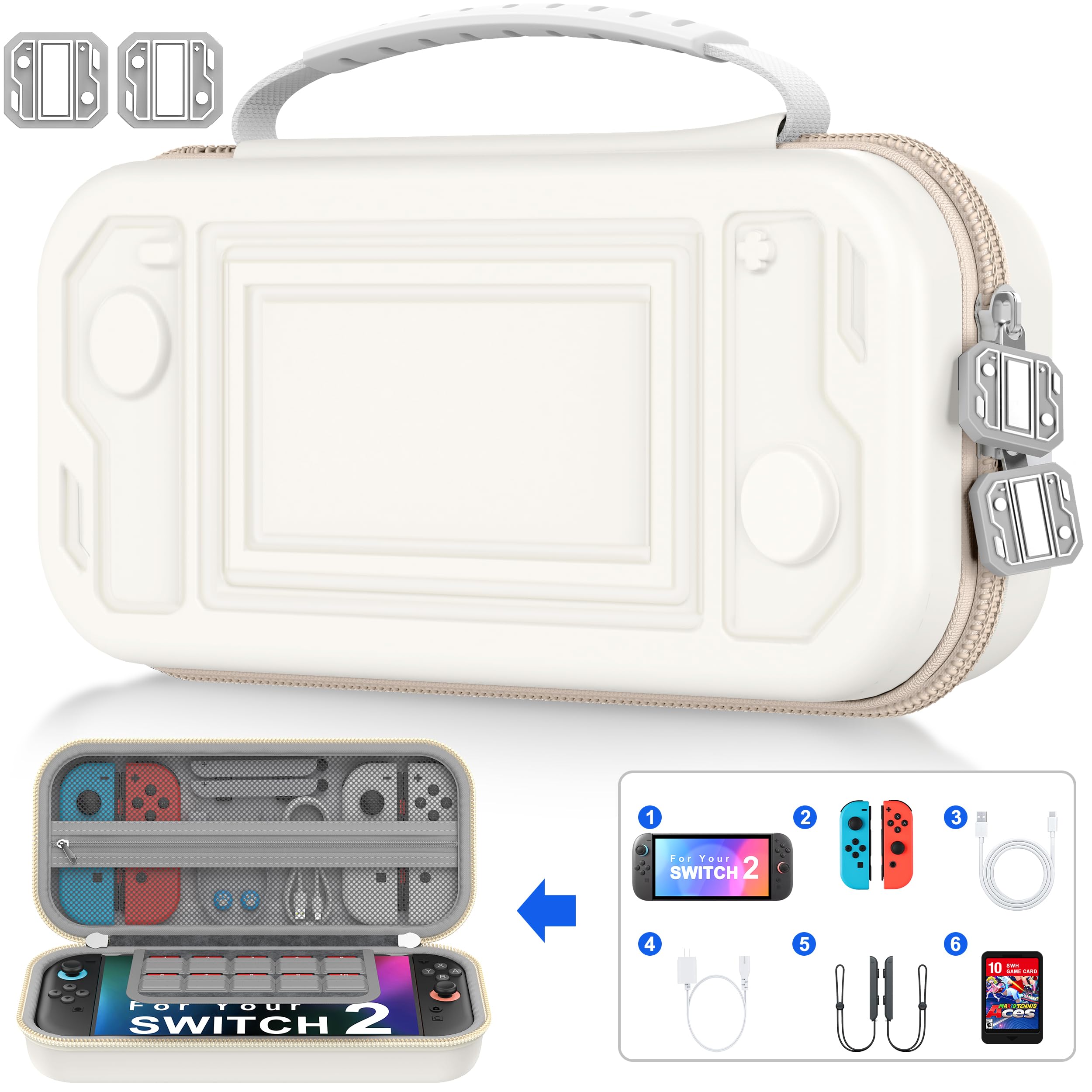 【2025年新版】 Switch 2/Switch/OLED ケース 保護カバー 収納バッグ 防水 防塵 防汚 耐衝撃 ナイロン素材 全面保護型 消臭 ゲームカード20枚 持ち運び便利 大容量 収納バッグ スイッチ ケース 旅行 白