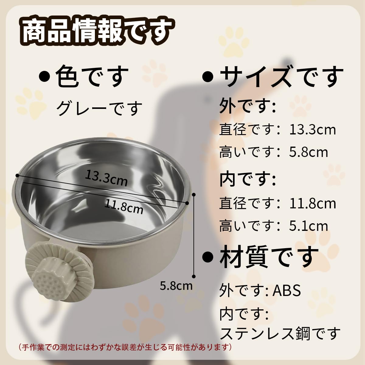 ペットぶら下げボウル ペットボウル ハンガー ゲージ用 ペット食器 餌入れ 固定 猫 犬 うさぎ 小動物用 食器 (グレー, S)