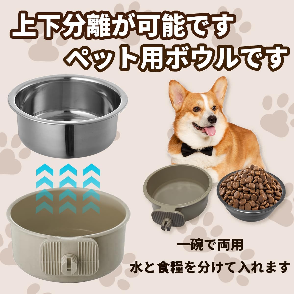 ペットぶら下げボウル ペットボウル ハンガー ゲージ用 ペット食器 餌入れ 固定 猫 犬 うさぎ 小動物用 食器 (グレー, M)