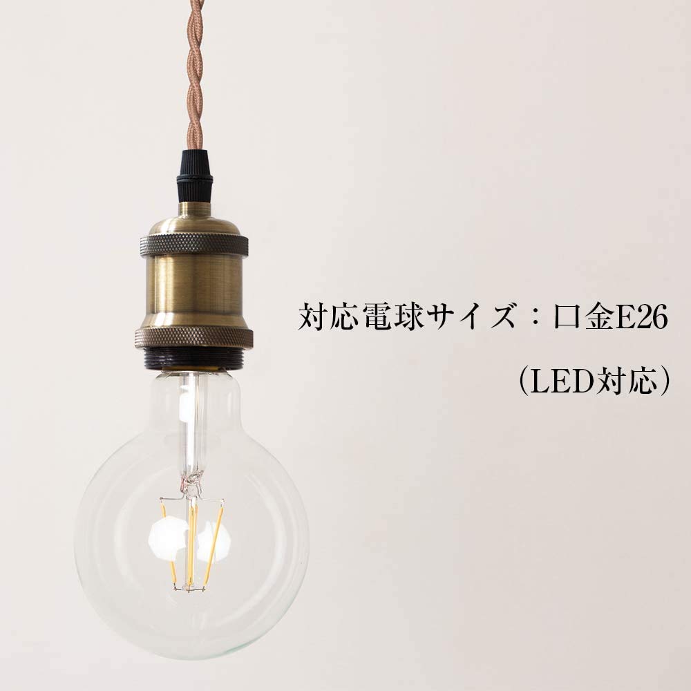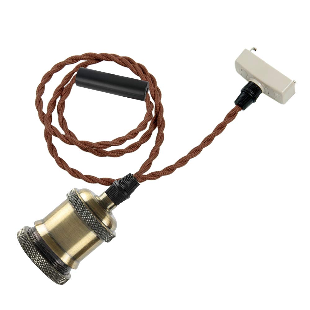 szbritelight 引掛シーリング用 電球ソケット E26 1灯 吊り下げ LED電球対応 ペンダントライト裸電球用 真鍮色 100cmコード調整可能 レトロ おしゃれ 天井照明 ヴィンテージ【電球なし】