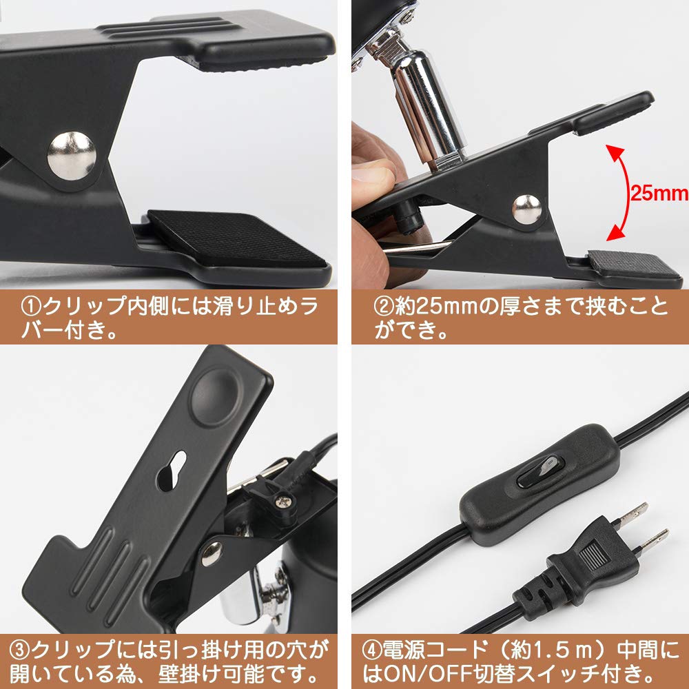 智光電気 クリップライト E26 電球ソケット 枕元 読書 照明 植物育成ライト 観葉植物 爬虫類 ライト 壁に掛け可能 スイッチ付き 200cmコード led対応