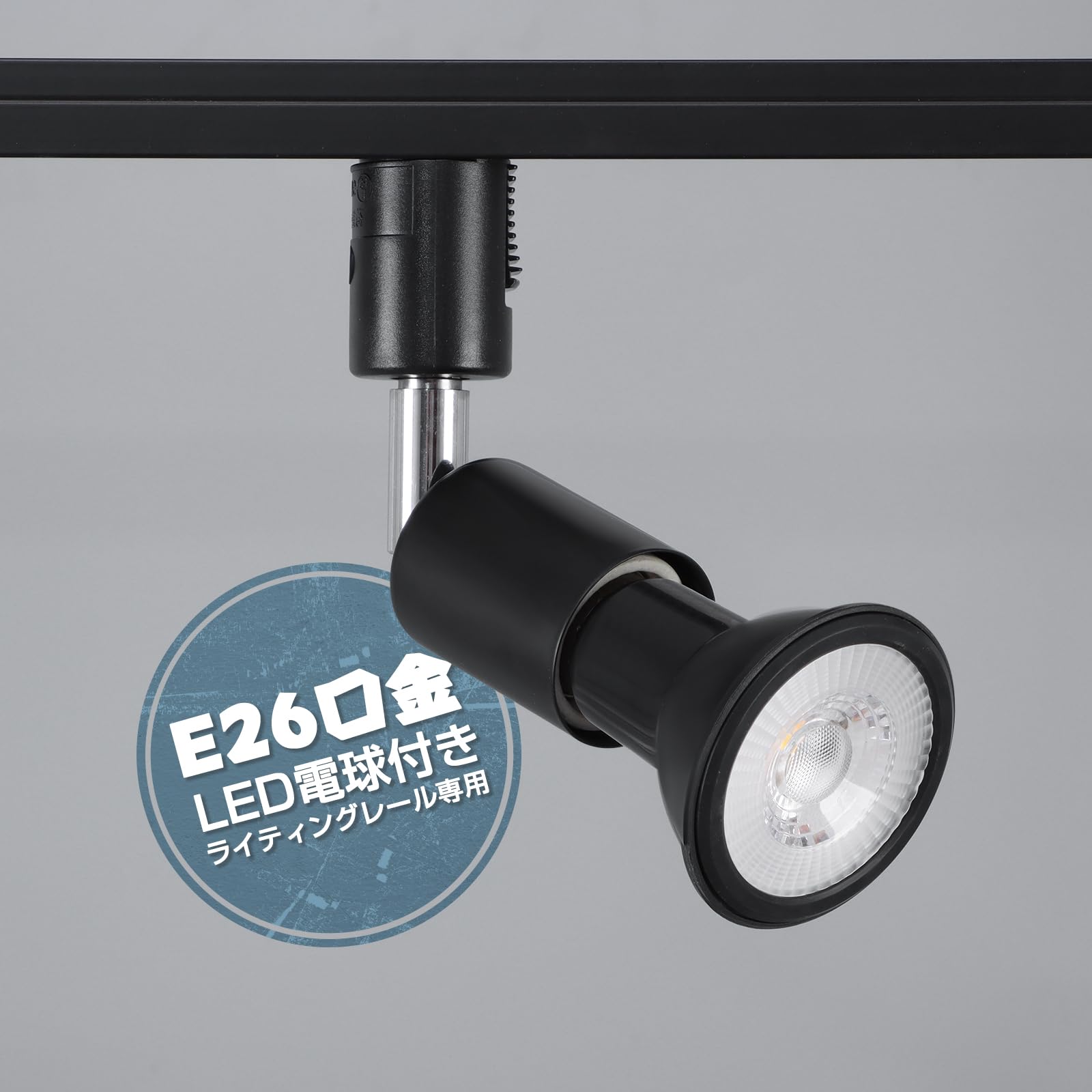 szbritelight ライティングバー用 スポットライト ダクトレールライト e26 電球付き ダクトレール用照明器具 ライティングレール 照明 PAR20 レフ球型 ランプ付 LED電球+器具セット (ブラック, 昼光色 2個セット)