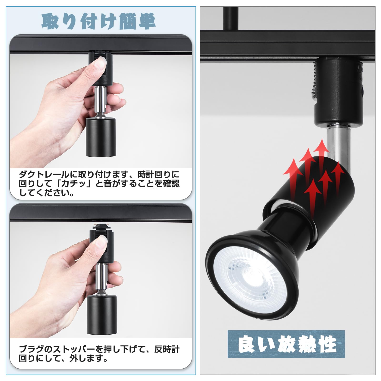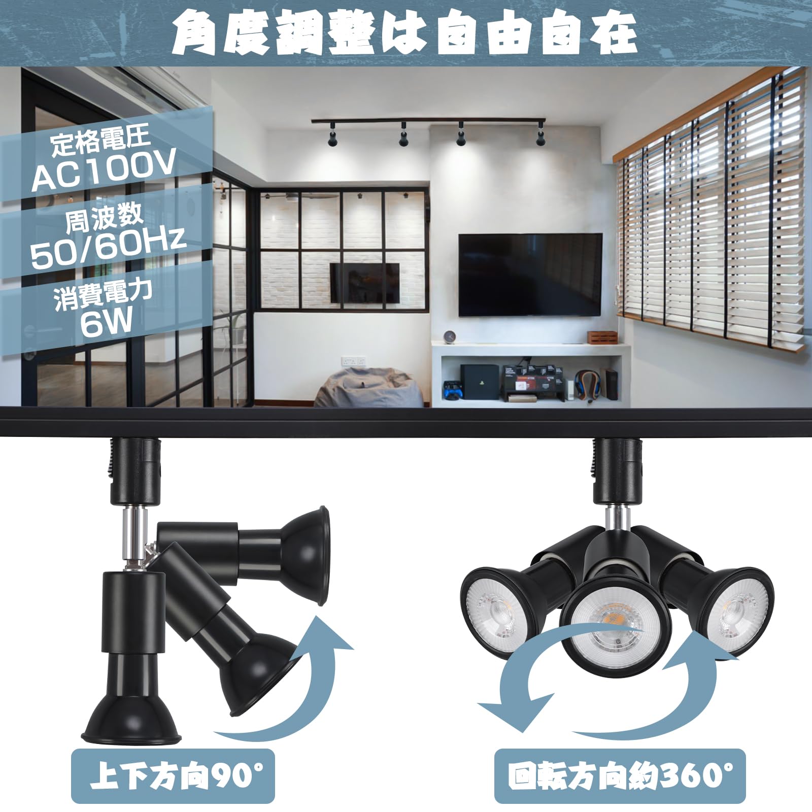 ダクトレール用スポットライト E11口金 電球なし ライティングバー用照明器具セット配線ダクトレール用 E11 LEDスポットライト 天井照明 照射角度調節可能 黑い 6個セット