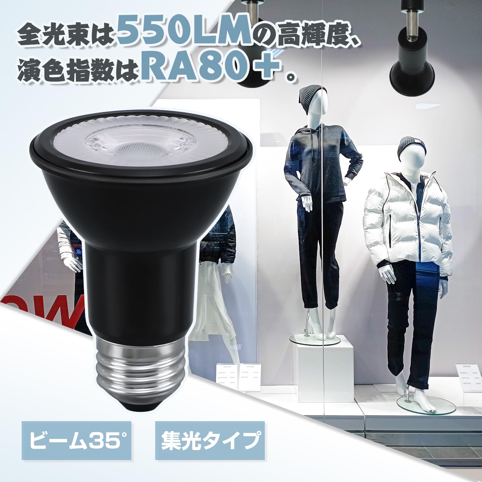szbritelight スポットライト e26 ダクトレールライト 電球付き ダクトレール用照明器具 ライティングレール 照明 PAR20 レフ球型 ランプ付 LED電球+器具セット (ブラック, 昼光色 6個セット)