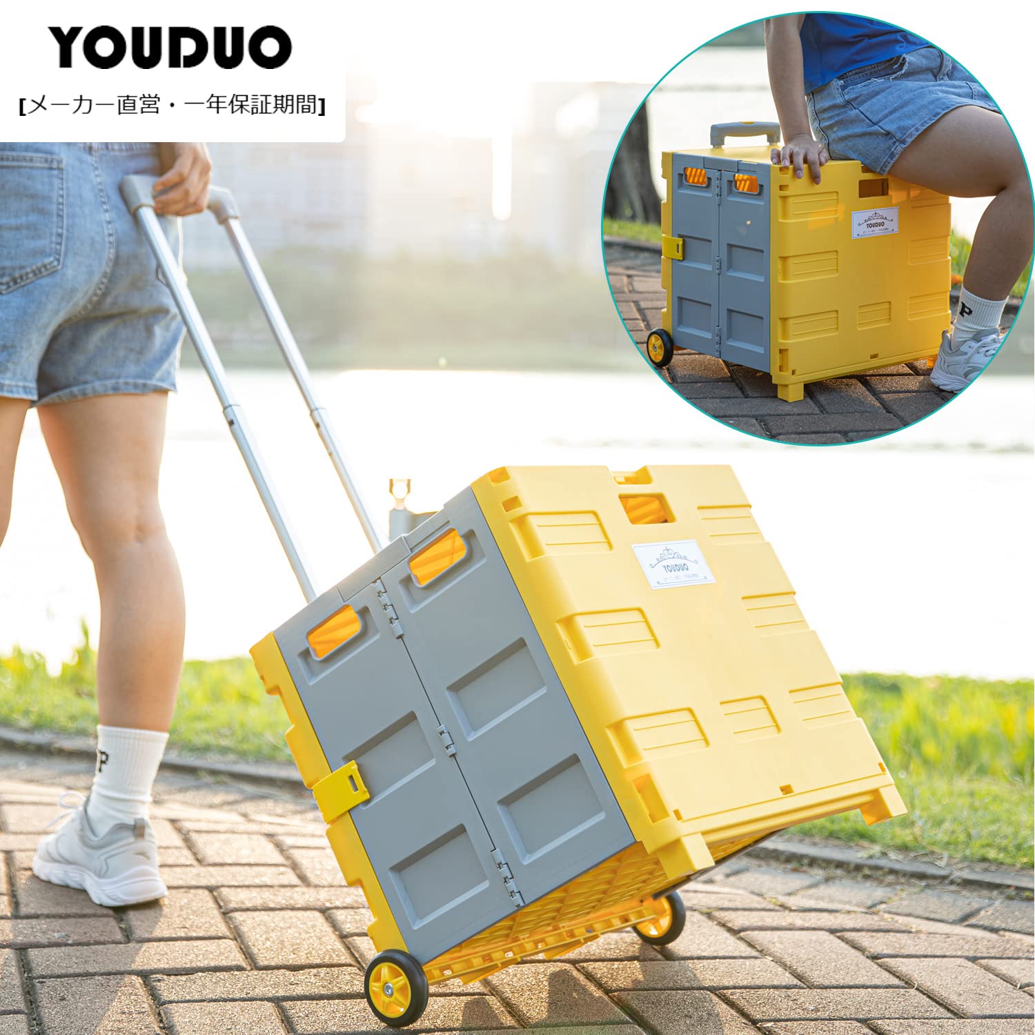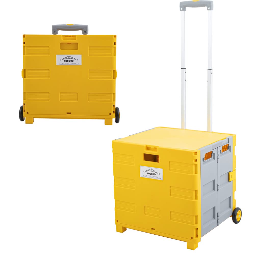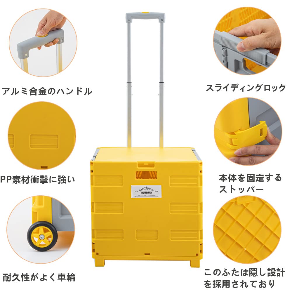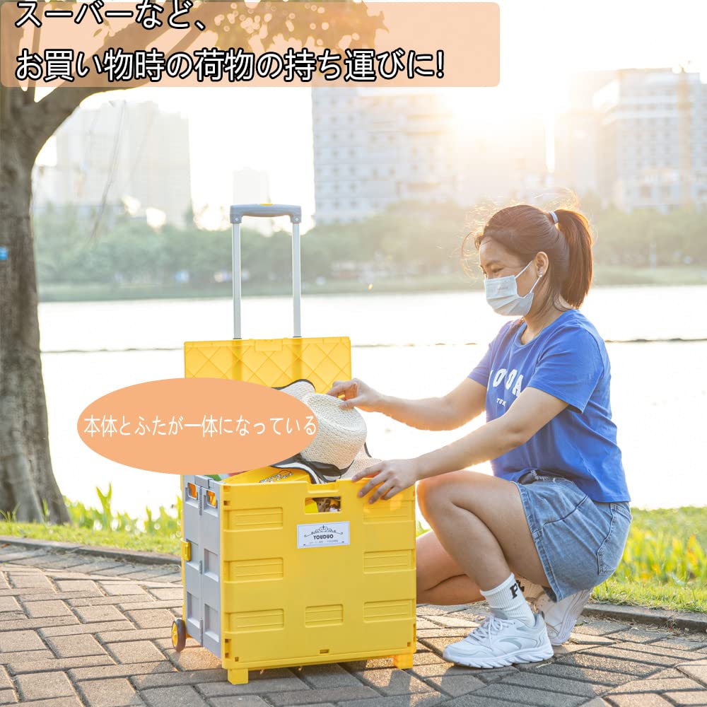 YOUDUOキャリーカートショッピングカート コンテナキャリー 折りたたみ 軽量 台車 コンテナカート買い物カゴ 運搬 ふた付耐荷重50kg