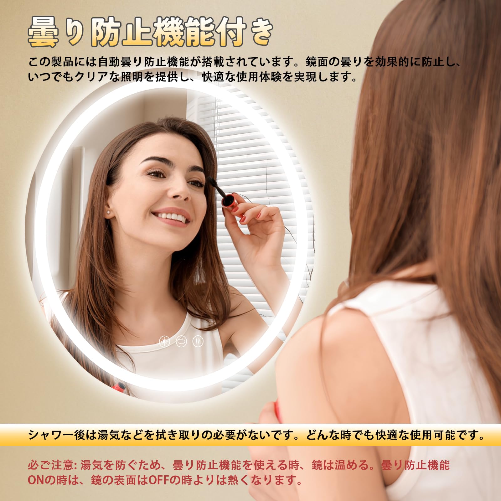 AAGWW 浴室 鏡 曇り止め 風呂 鏡 曇り止め 洗面台 鏡 壁掛け 鏡の曇り止め 三色調光 時刻と温度 タッチスクリーン LED 強化ガラス ダブルタッチ 40*60cm(Aタイプ)
