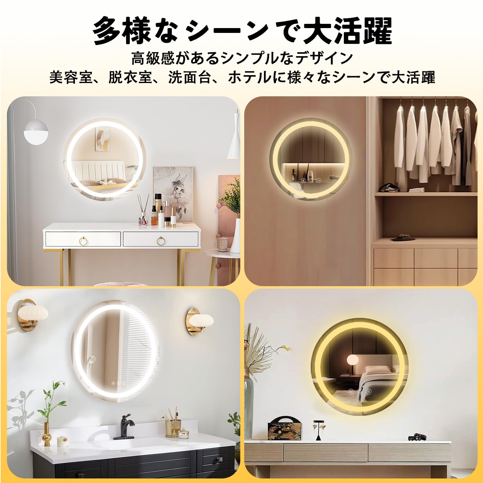 Decomira-デコミラ LEDミラー 壁掛け 風呂場 鏡 LEDバスミラー バックライト 防曇 防水 記憶機能 色温度&明るさ調節可能 円型 直径60CM D1025-2424B