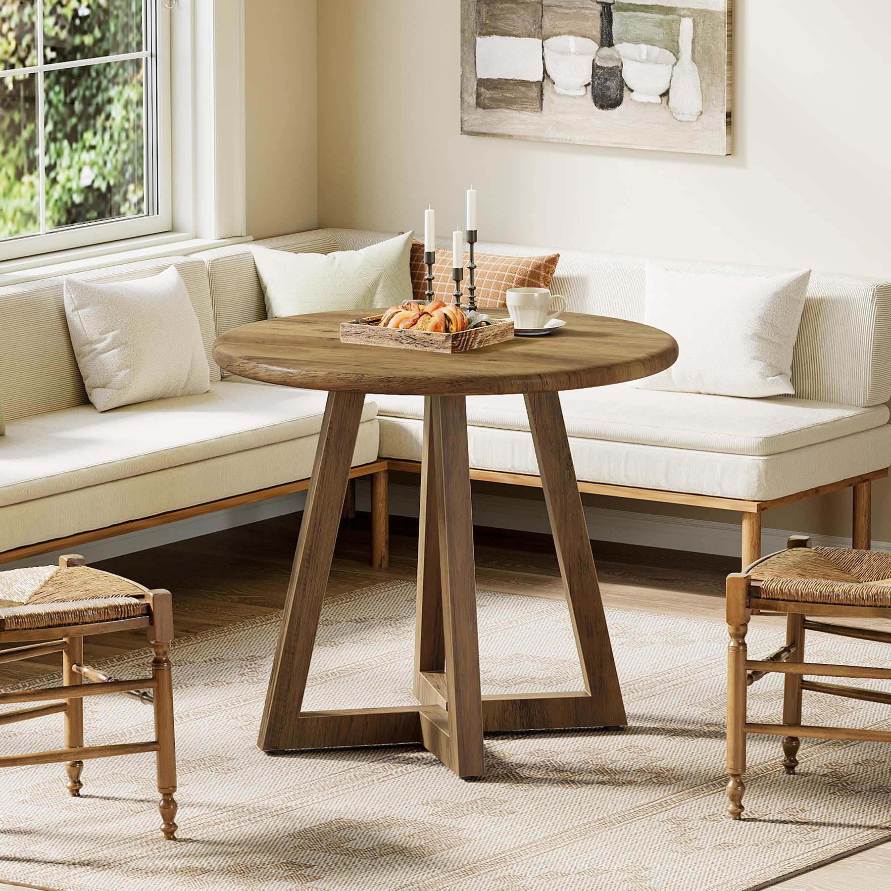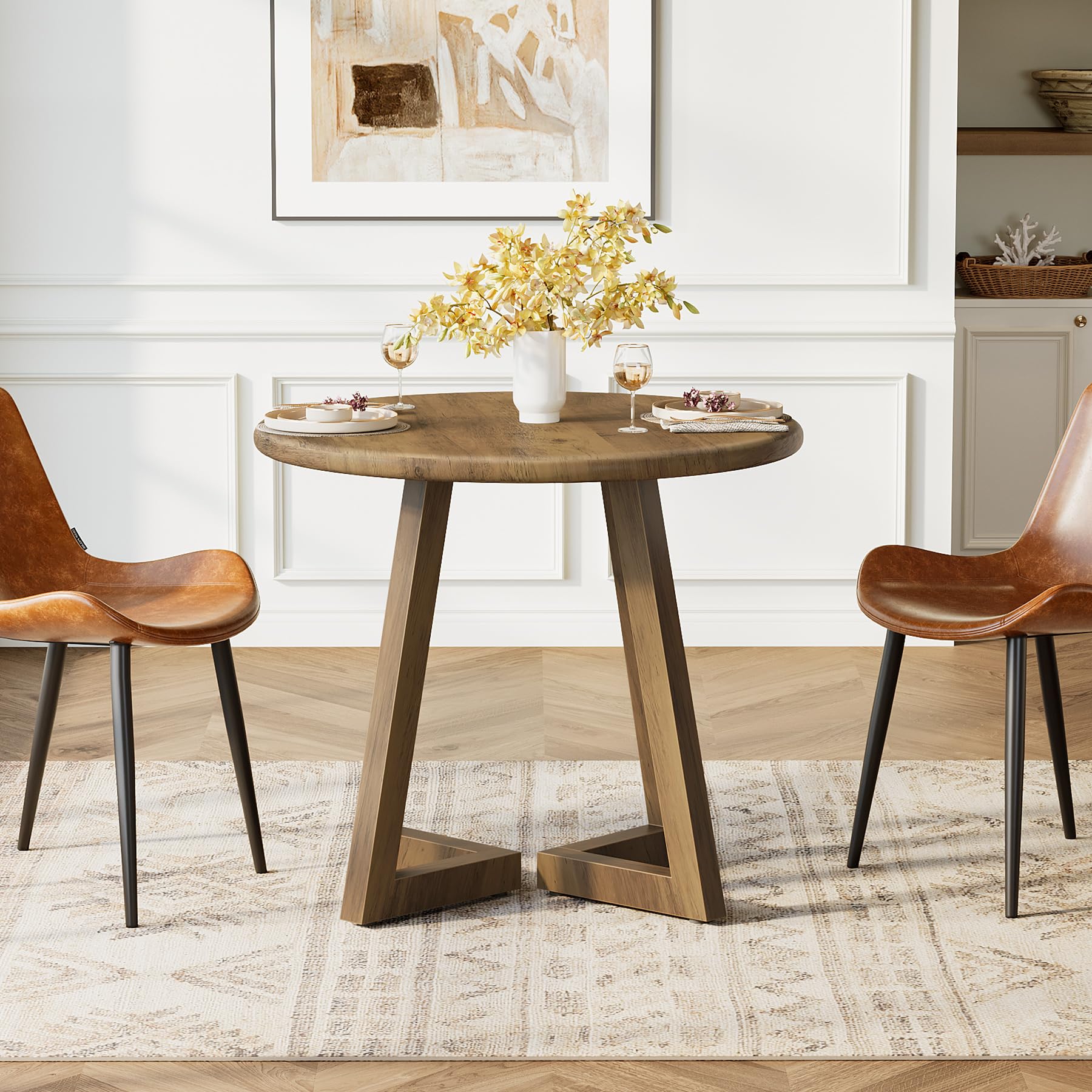 Tribesigns ダイニングテーブル 幅80cm 単品 丸 円形 食卓 テーブル 二人用 木制 おしゃれ 2-4人用 ブラウン