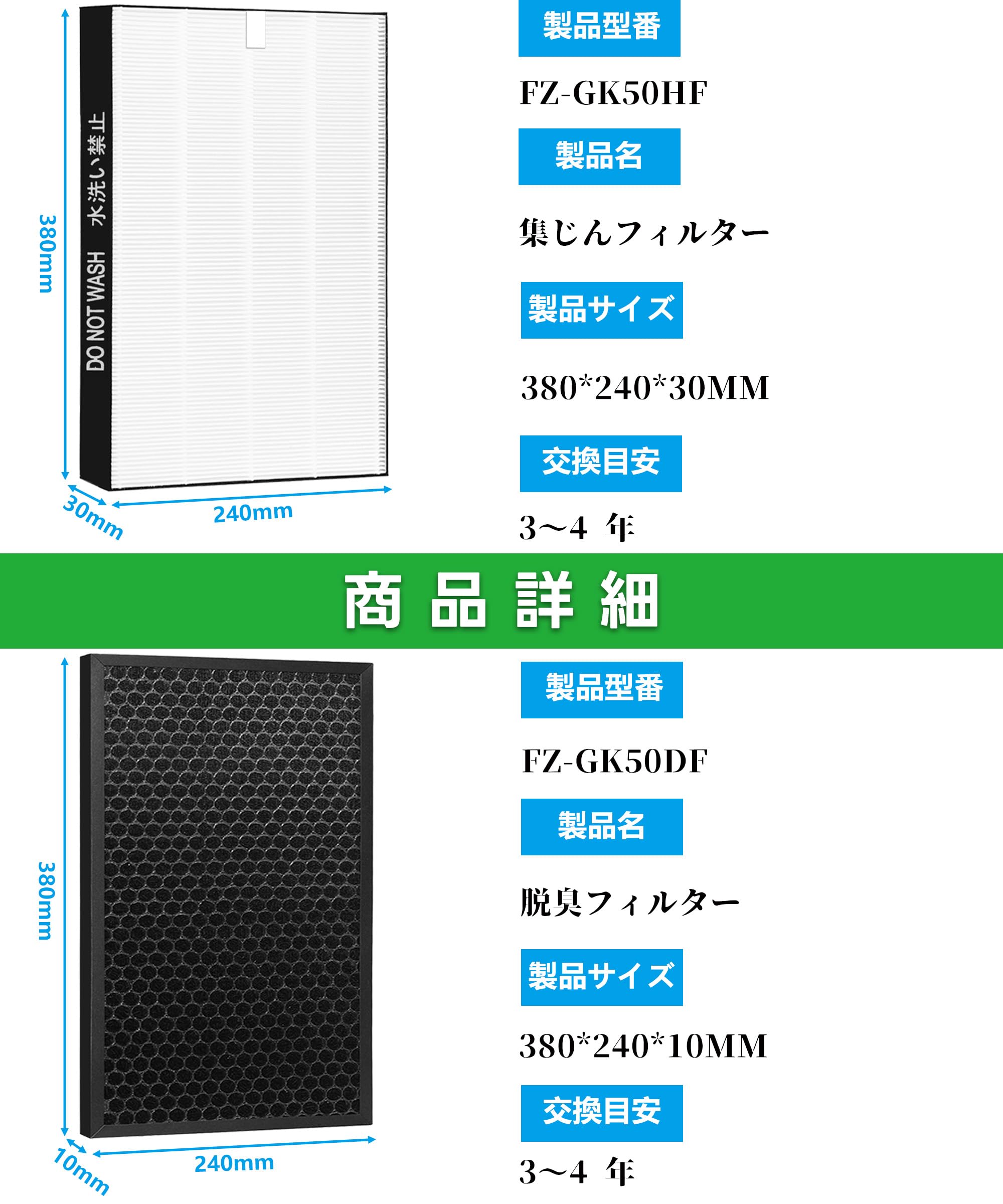 MRICH シャープ(SHARP)蚊取空気清浄機 交換用フィルター 互換品 FZ-GK50HF 集じんフィルター FZ-GK50DF 脱臭フィルター (2点セット)