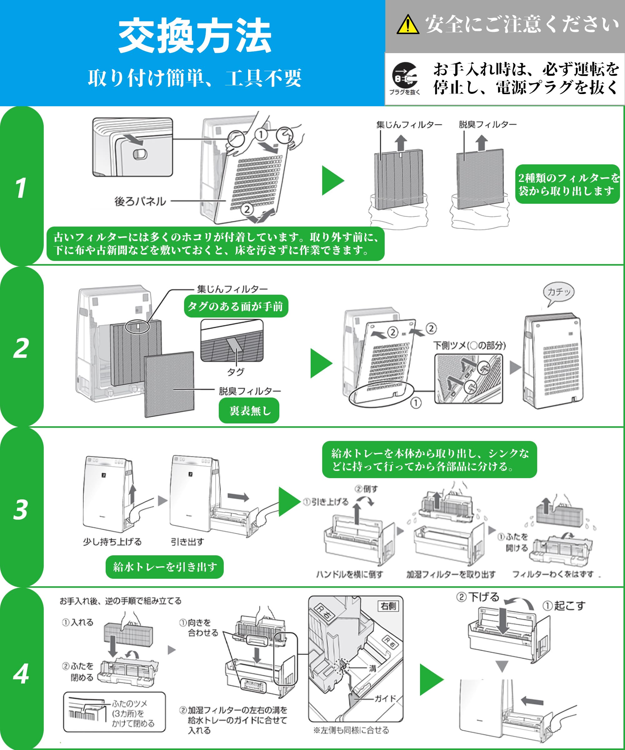 J&Q F-ZXCP50 集じんフィルター と F-ZXGD50 脱臭フィルターF-PXG50、F-PXC50、F-PDC50、F-P548E4、F-VXD50、F-PXD50、F-P548E5、F-PXE50、F-P548E6、F-VCD50空気清浄機用交換フィルター