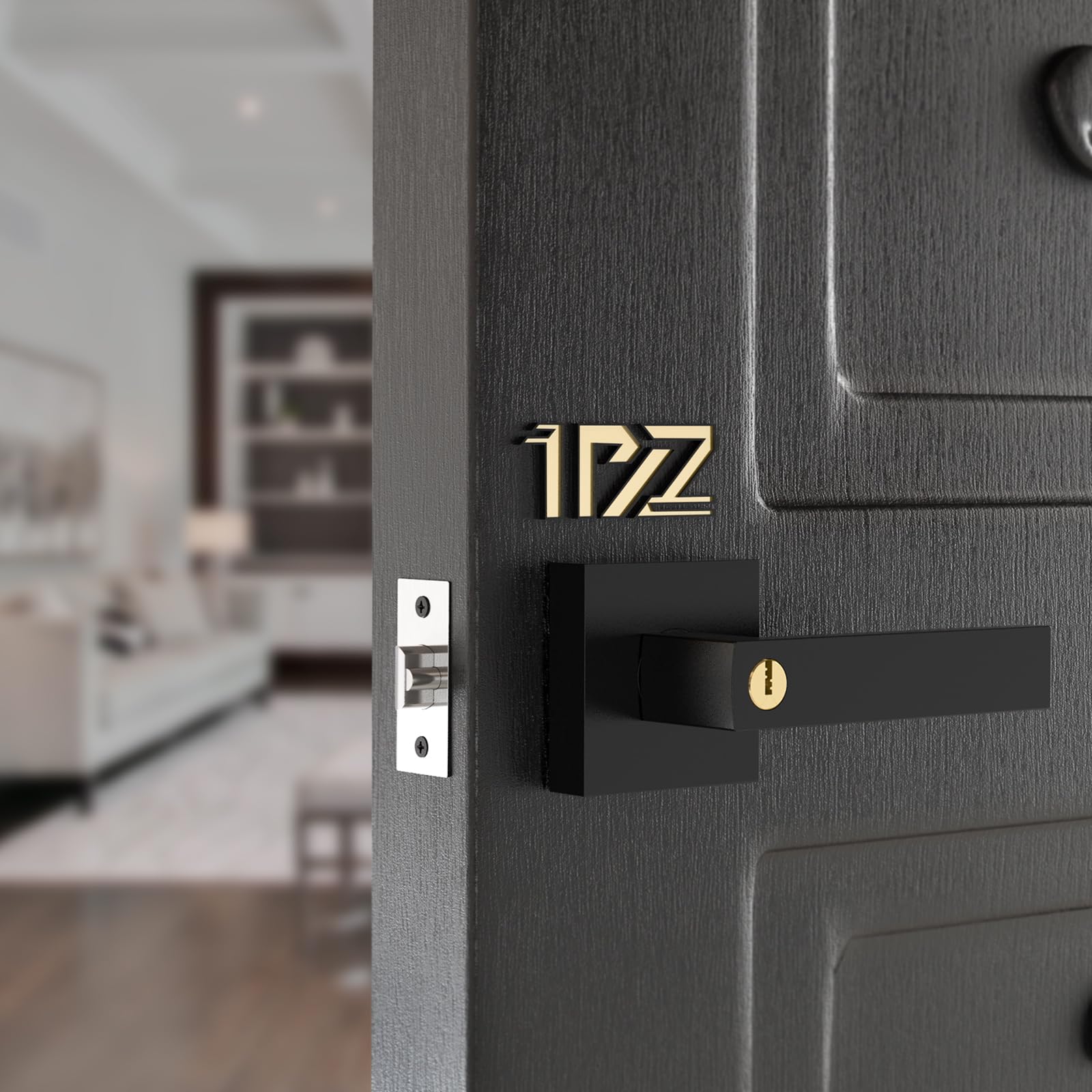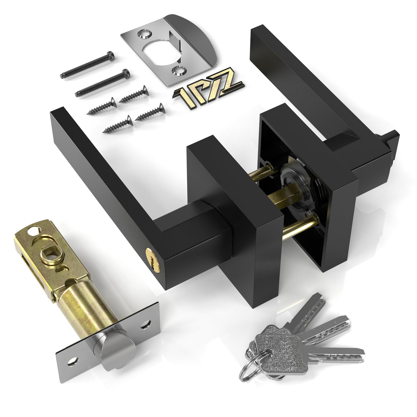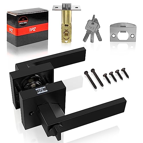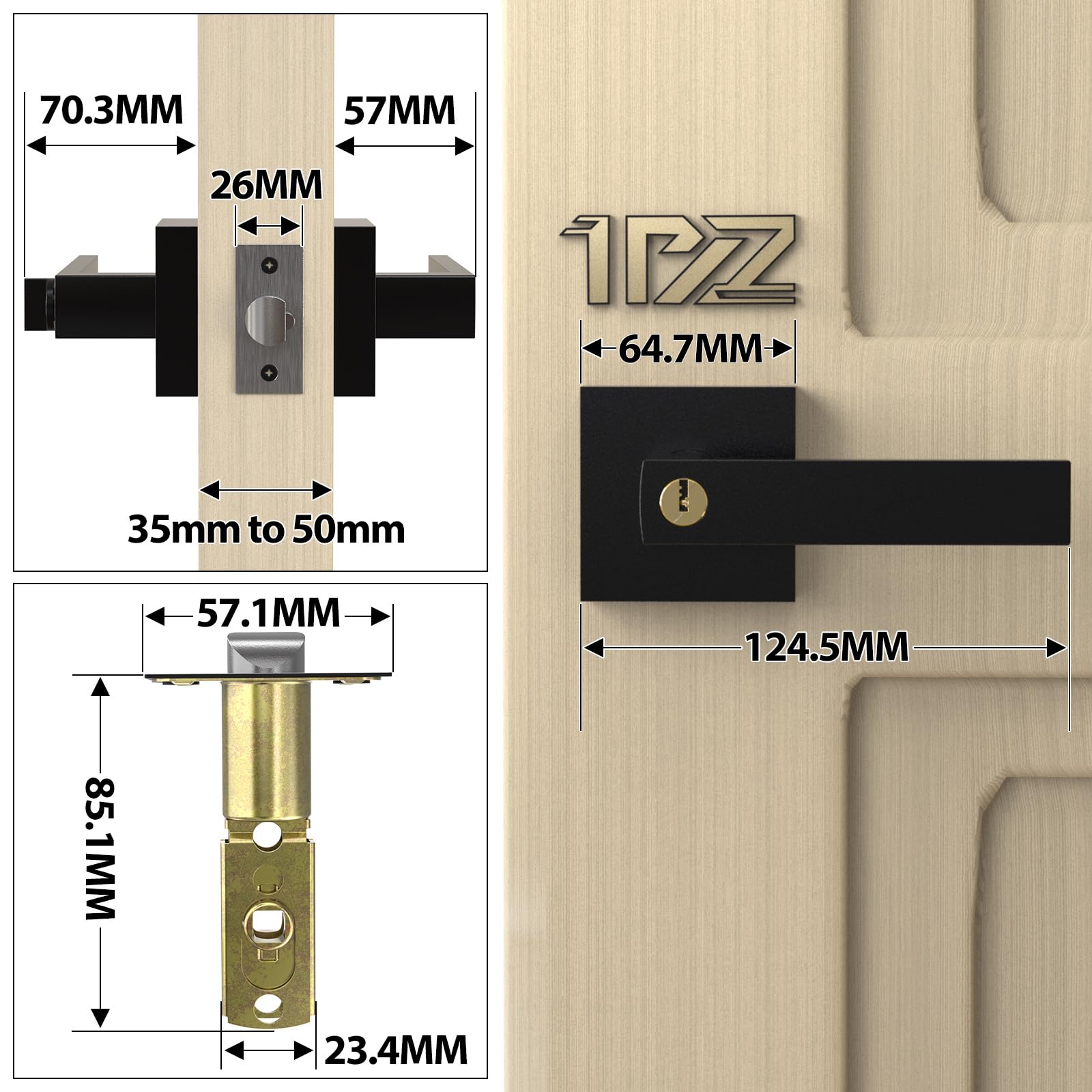 1PZ JP2-SJ5 ドアノブ レバーハンドル 鍵付き ドアロック 真鍮製シリンダー 室内 寝室 玄関 浴室に適用 マット 黒 [並行輸入品]